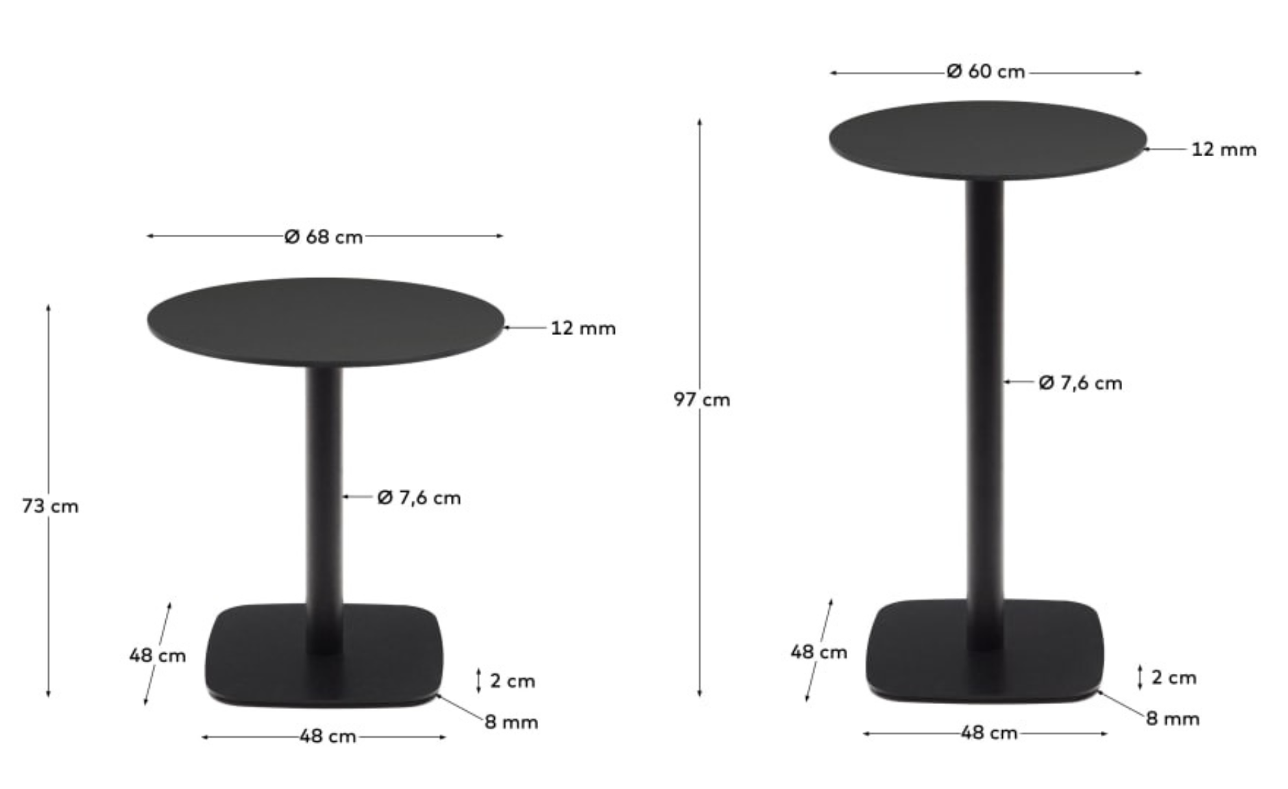 A round -shaped table top gives it a sophisticated appearance, while a solid metal base ensures stability and durability. Black color, both the countertop and bases, adds elegance and contrast, matching both modern and classic interiors, and giving the room a stylish and sophisticated character.