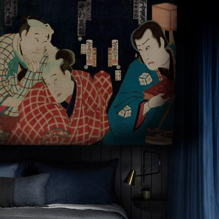 Non-woven wallpaper with SAMURAI CHRONICALES warrior motif in navy blue