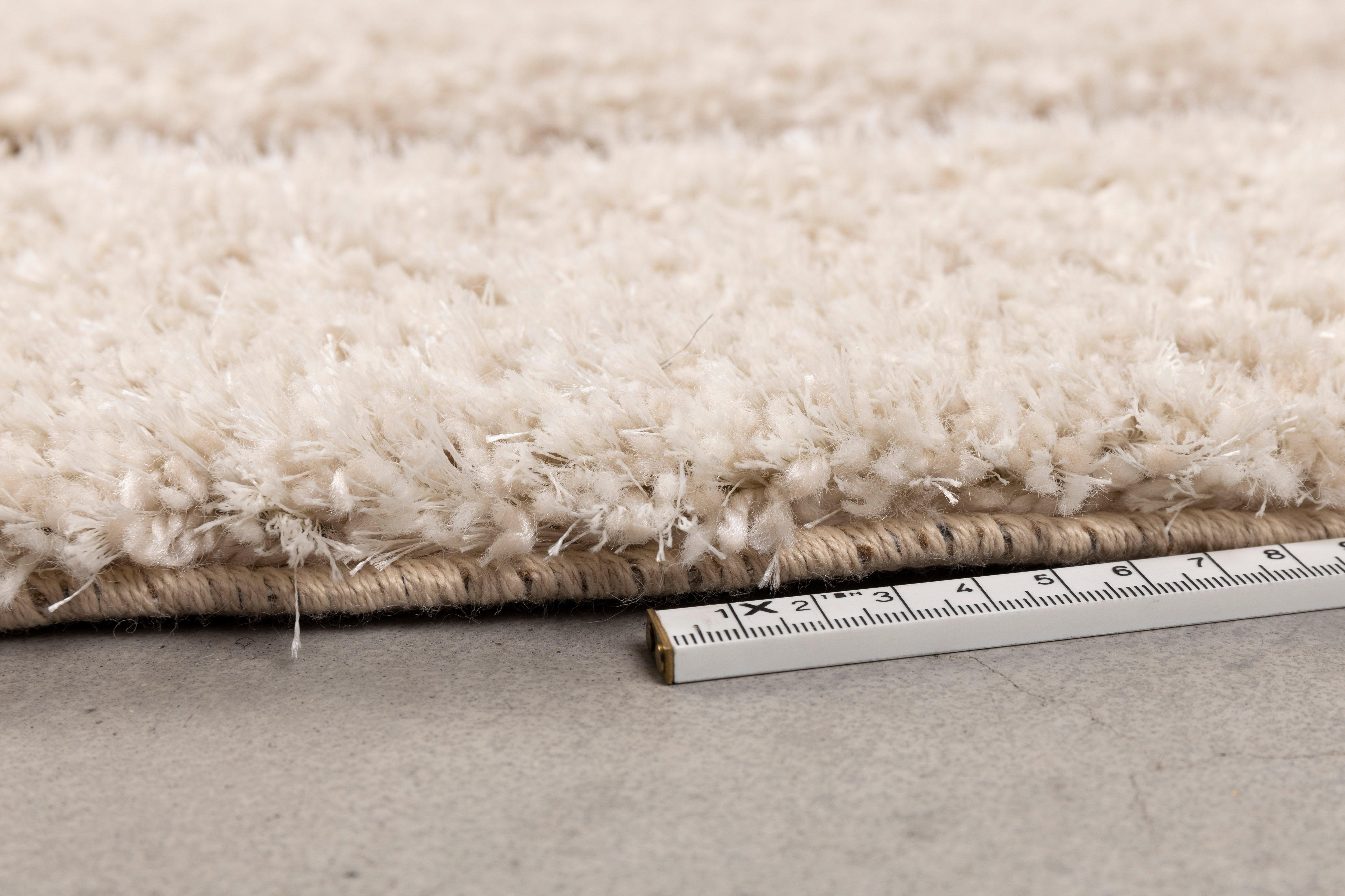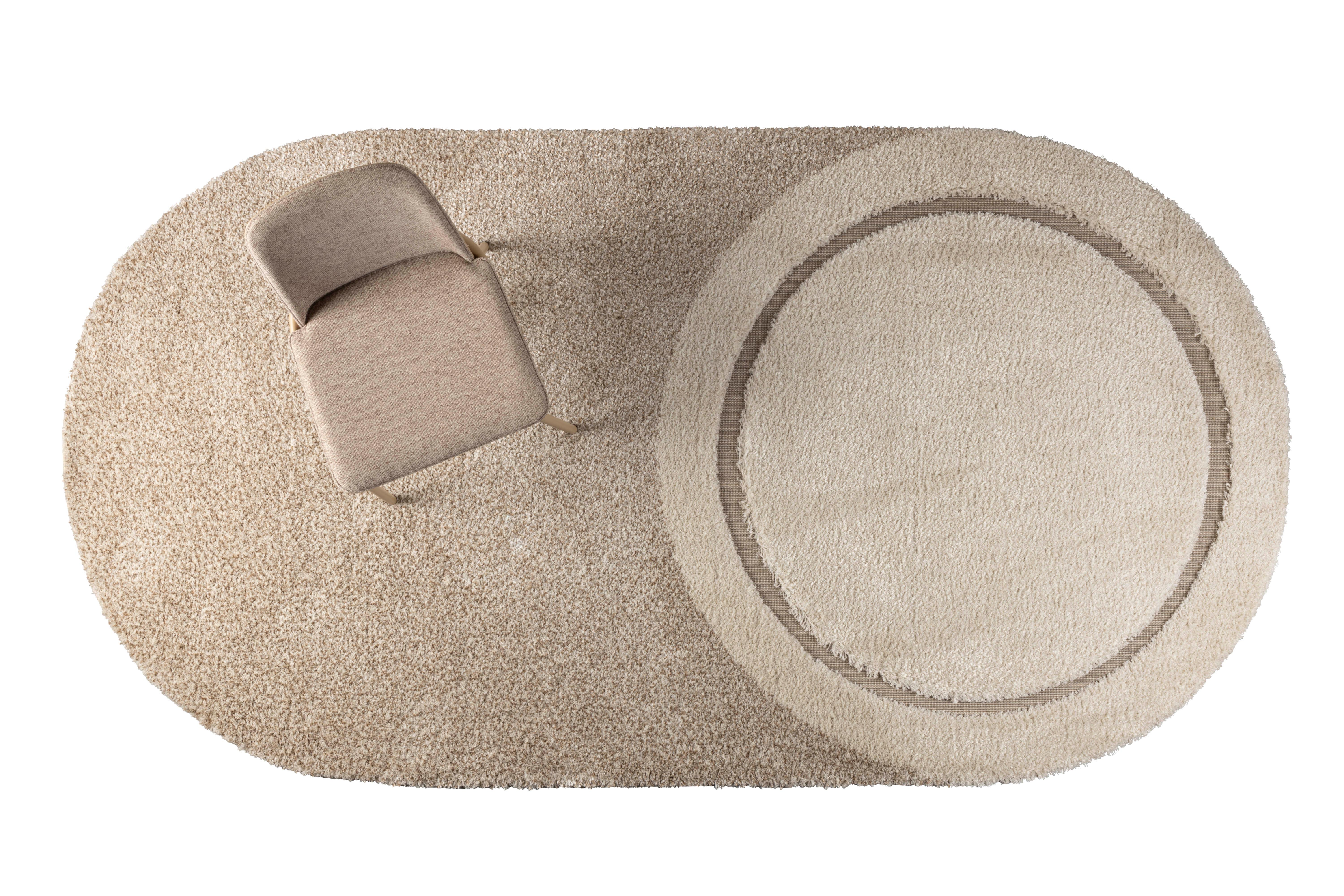 Rug Spark has a sand palette and is perfect for rest under the table in the dining room or in the living room. Made of a mixture of wool and polypropylene, a woven carpet with long bristles is so soft that you have the impression that you have walked on the clouds. The oval shape of the carpet is created by a special waving technique, which leaves an additional circle around, adding a unique character.