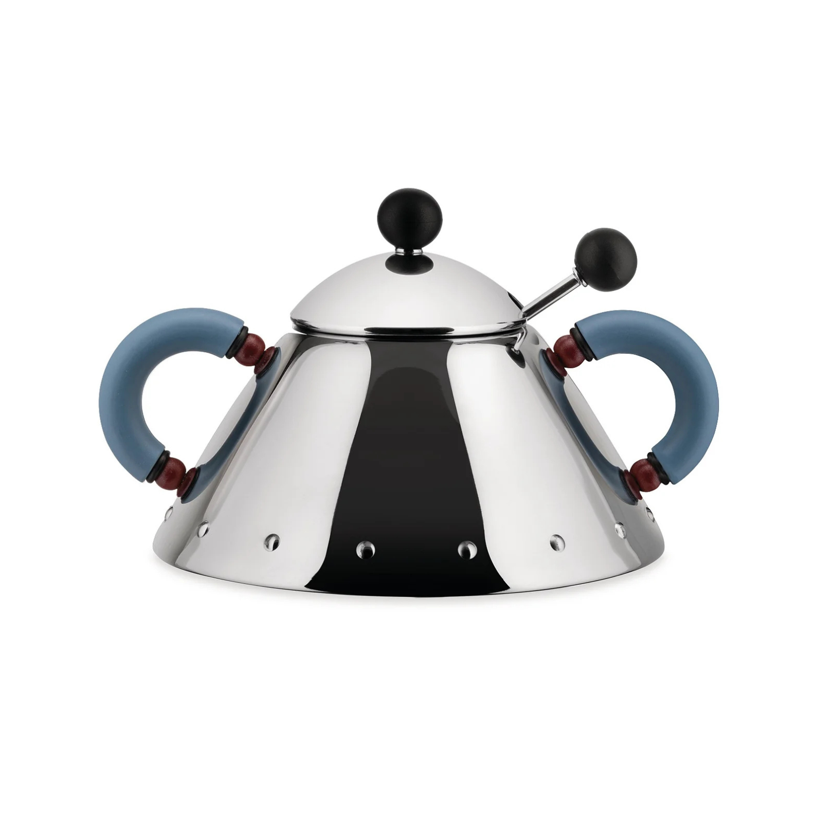Sugar bowl 9097 is a style icon designed by Michael Graves. Made of polished stainless steel, it impresses with conical shape and handles in a delicate blue color, which add its elegance and convenience of use.