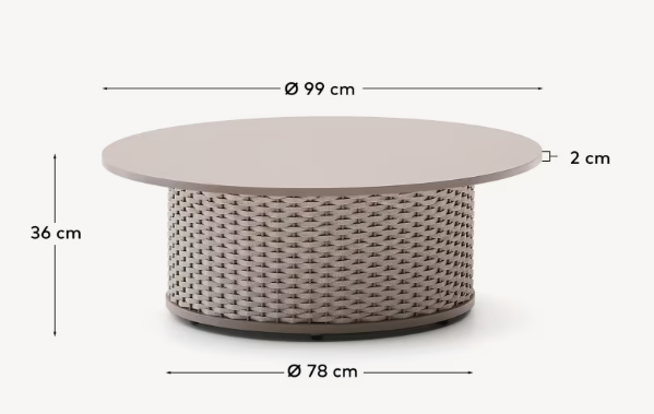 Garden coffee table Sedalis is a combination of elegance, lightness and resistance to external conditions. Aluminum construction, steel reinforcements and hand -woven rope form a stable and aesthetic whole. Subtle rounding, simple lines and modern design make it the perfect choice for any terrace or garden arrangement. Thanks to the powder coating and e-coating technology, table It is resistant to UV radiation, rust and corrosion.