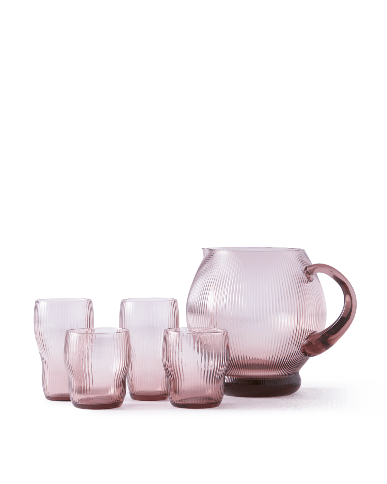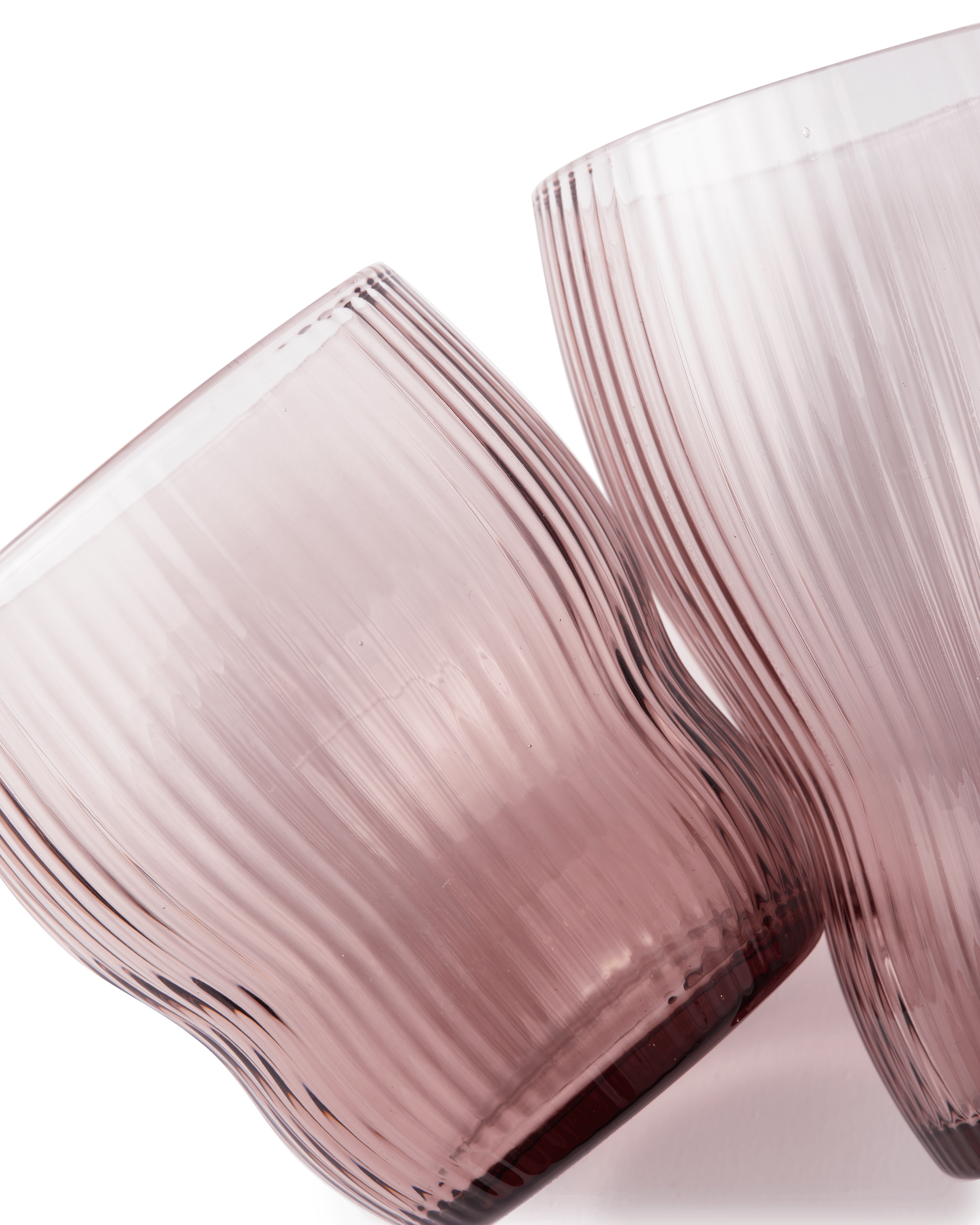 A set of high glasses Pum in plum color made of durable glass is an extremely effective element of equipment. Their contoured protrusions and round shapes give them a unique character, resembling both elements of nature and a fairy -tale world. These elegant glasses are not only practical, but also are a beautiful interior decoration, ideal for serving your favorite drinks.