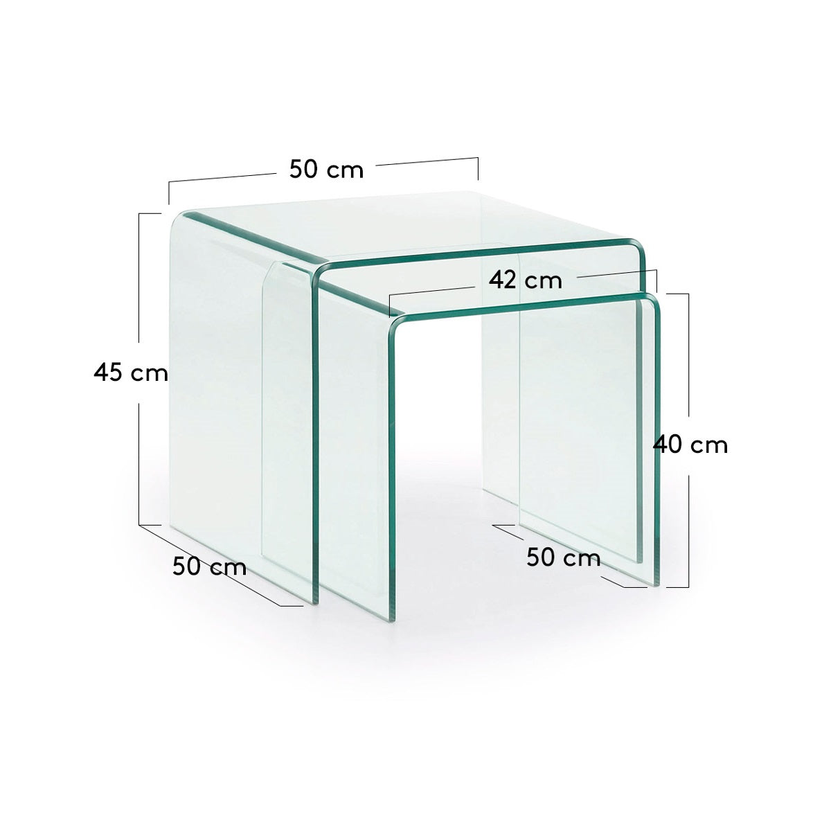 Set of side tables, gravan, transparent glass