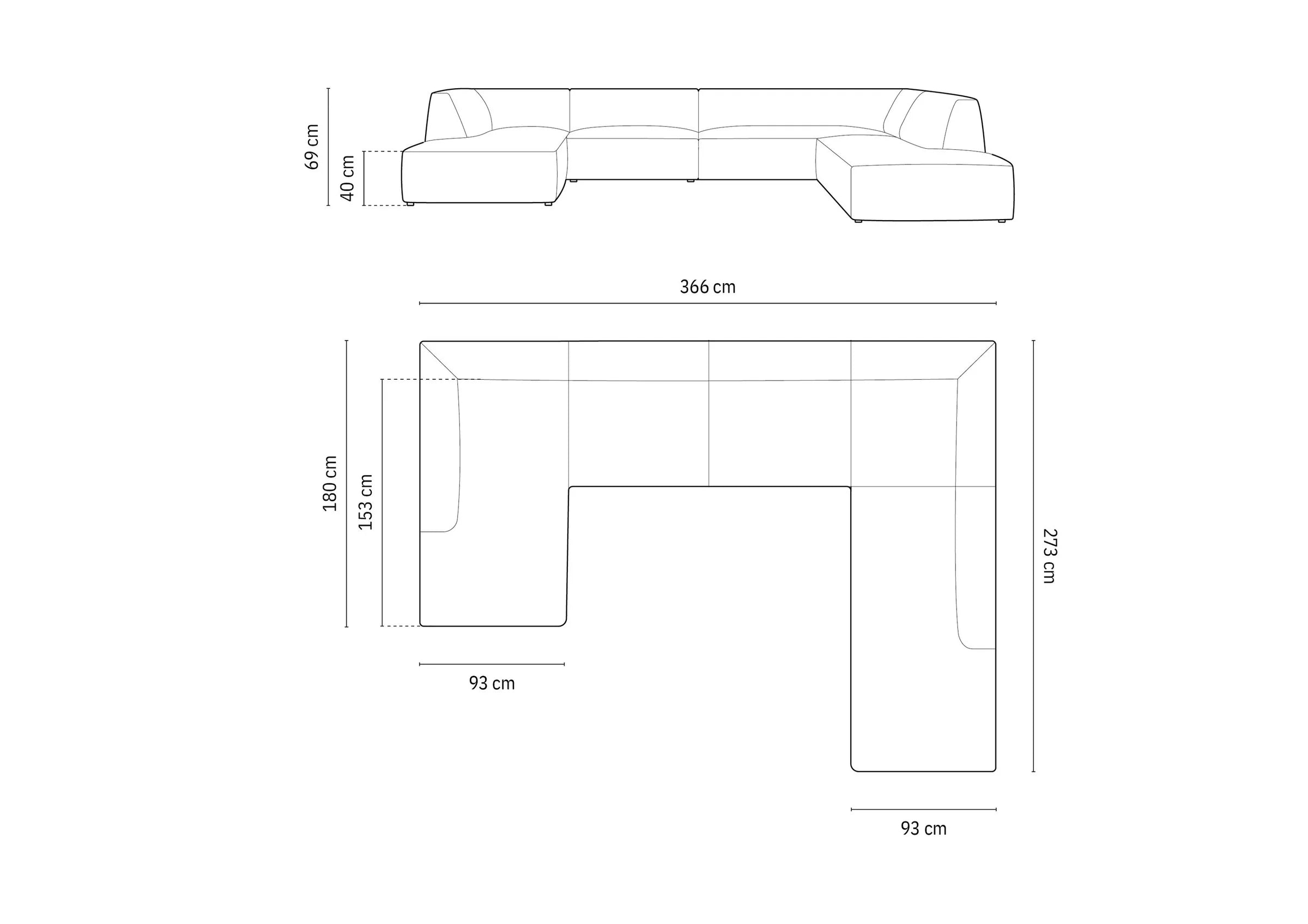 Narożnik w kształcie U sztruksowa prawostronny RUBY jasnoszary Micadoni    Eye on Design