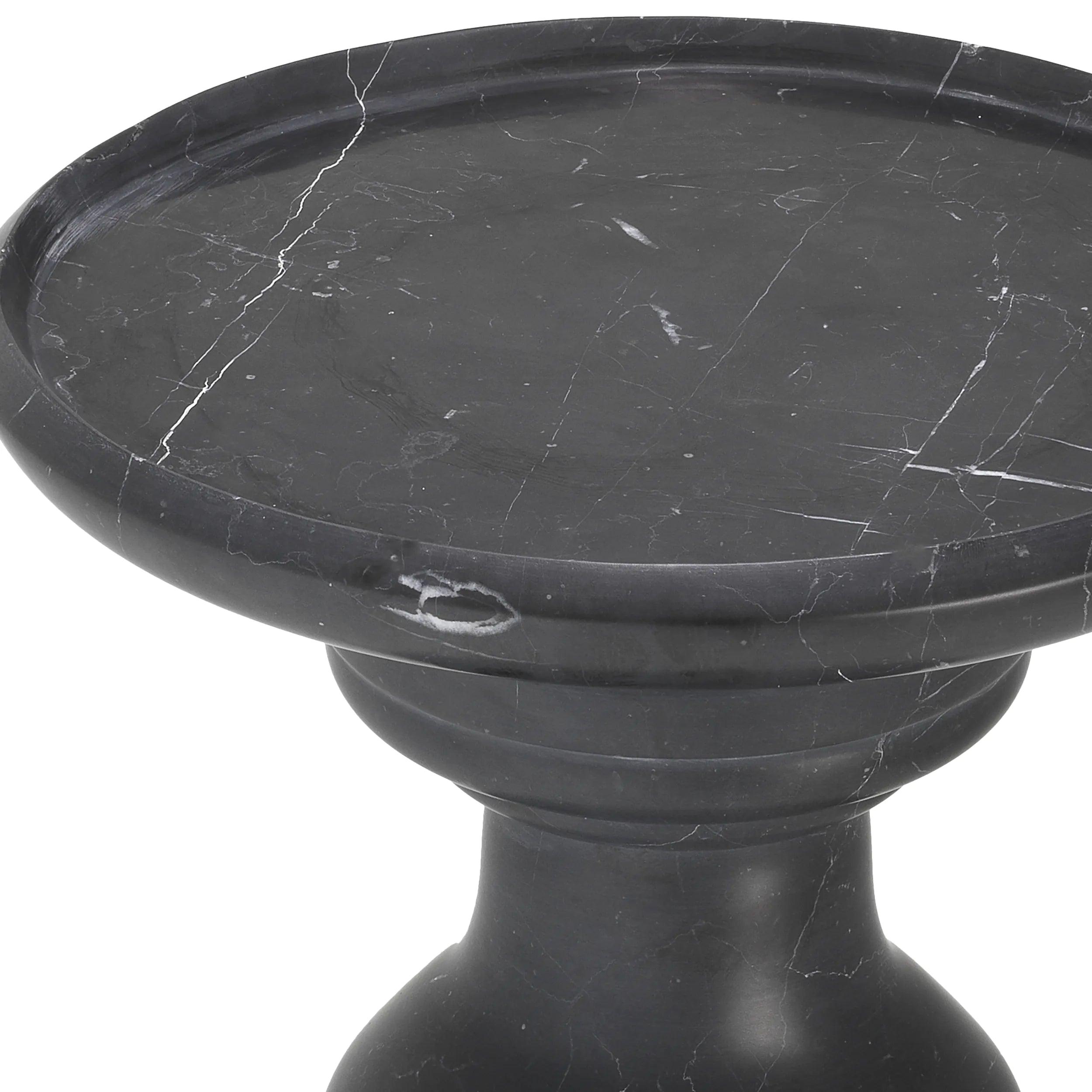 The final polished finish adds another level of elegance to this piece of furniture. By skipping the last stage of polishing, a marble with a matte, somewhat mysterious surface has been achieved, which is pleasant to the touch and reminiscent of velvet. As a result, the black side table Melody is not only a functional addition to the interior but also catches the eye and becomes a true focal point in any room.