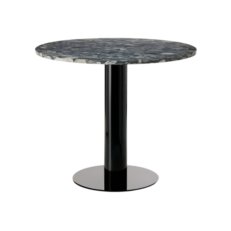 Round table tube stone marble with a black base