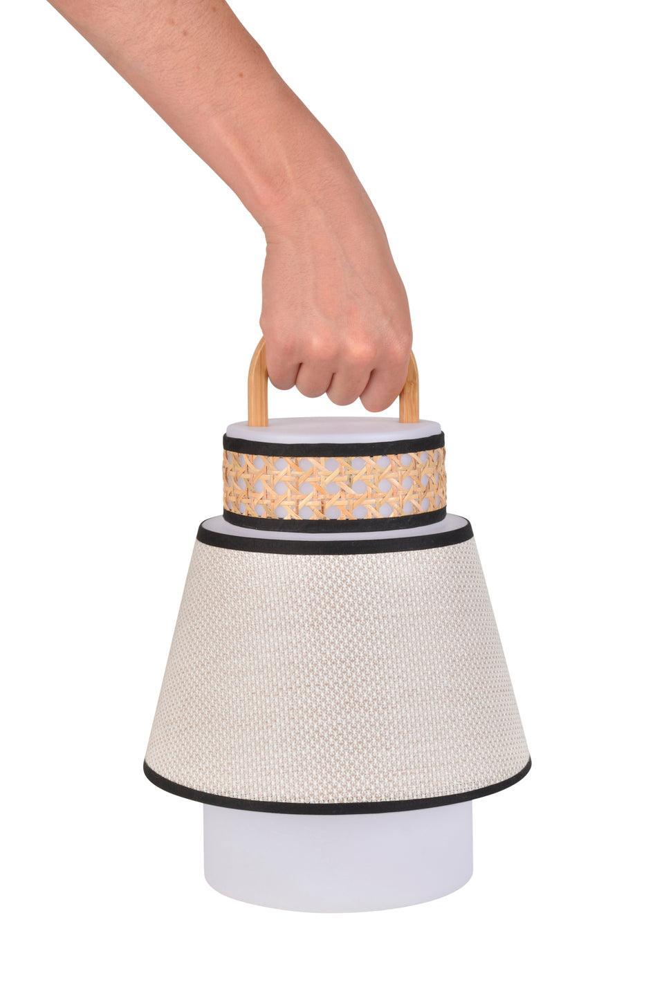 Outer lamp Singapour in a beige shade is a portable outer lamp made of polypropylene with a bamboo handle. Her textile lampshade is equipped with a removable natural reed, which gives the lamp a unique character. It has a loadable LED base with an attached USB cable, offering 3 color temperatures and 2 lighting intensity.