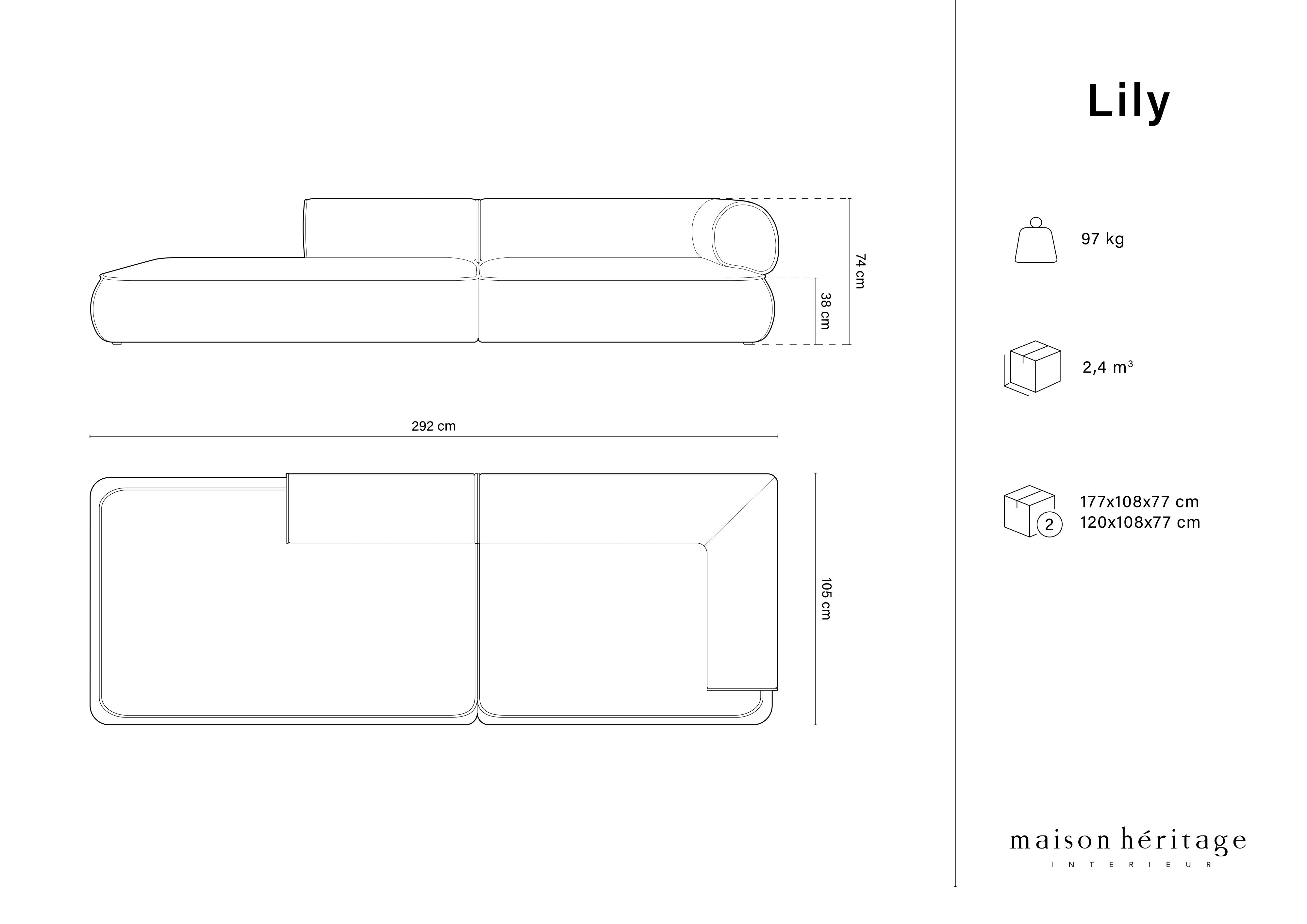 The deep seats are springy and exceptionally comfortable. Delicate tufting and stitching highlight the classic character of the design. With its low and wide silhouette the sofa Lily will bring a bit of coziness and warmth to the interior. The collection offers various combinations of sofas and corner pieces, as well as a chaise longue and a large pouf, allowing you to create a unique decor.