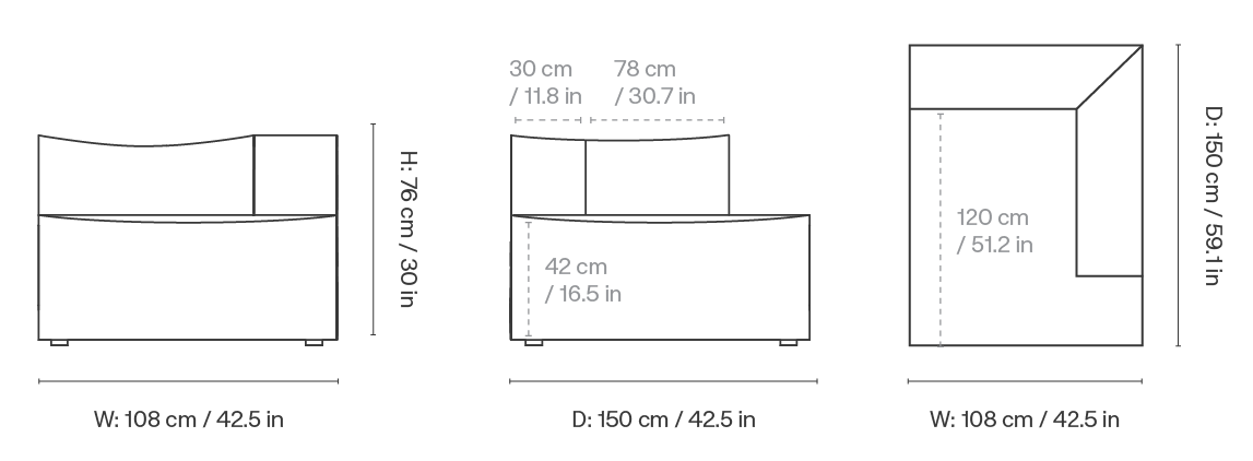 Chaise longue for the modular sofa is made from innovative microcellular foam, which provides exceptional durability and comfort. Thanks to the removable cover, keeping the chair clean is incredibly easy. Additionally, the solid construction made from FSC™ Mix-certified wood guarantees eco-friendly production and product stability for many years to come.