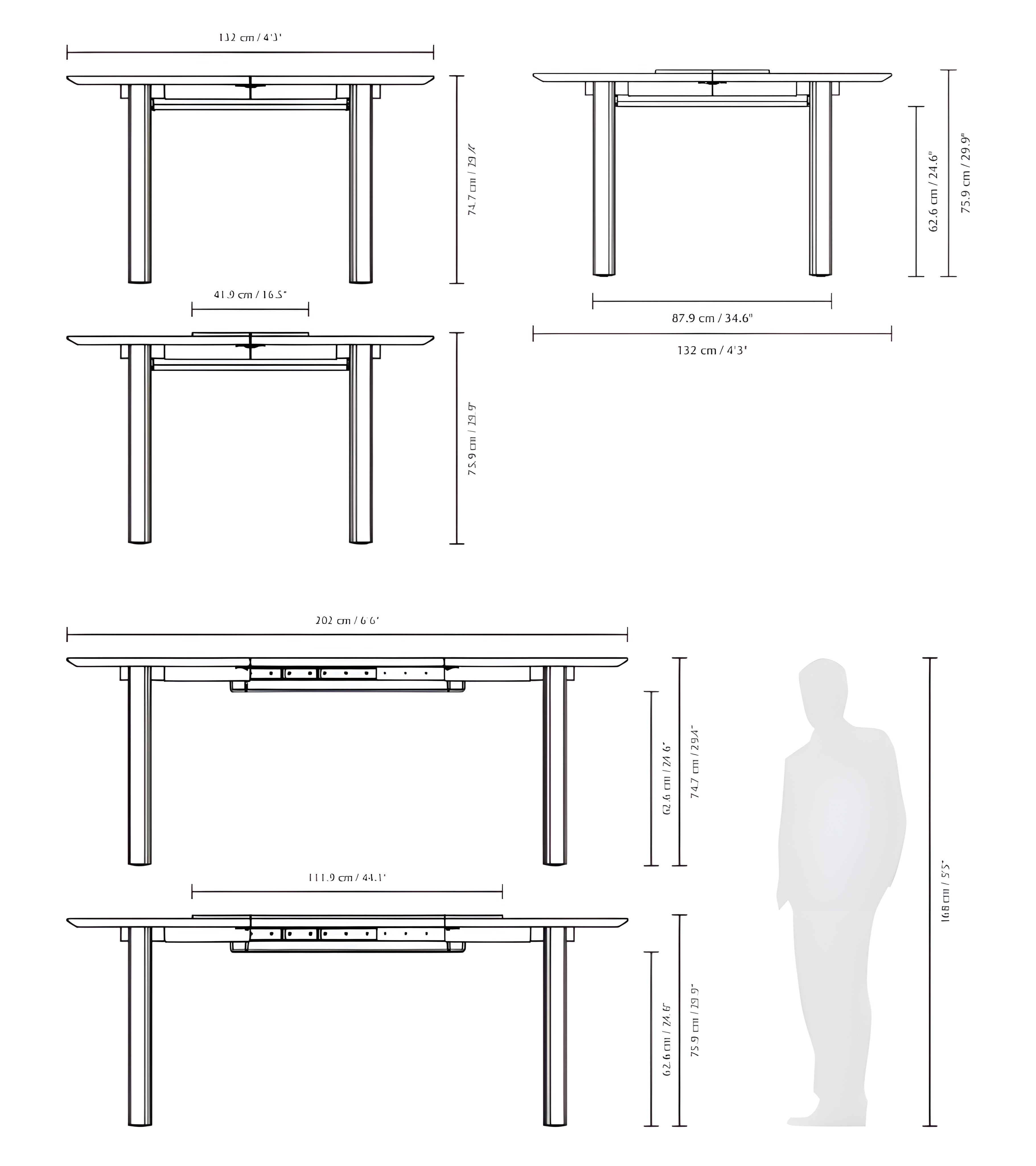 A distinctive feature of the table is the raised central part of the tabletop, which can be showcased as a pedestal for decorations, flowers, or dishes. When a flat surface is needed – for example, to lay a tablecloth – the center can be easily lowered to align with the rest of the tabletop. Comfort in use goes hand in hand with aesthetics: Comfort Circle is available with smooth or ribbed legs, in a finish of oak or dark oak, with details in nero brass.