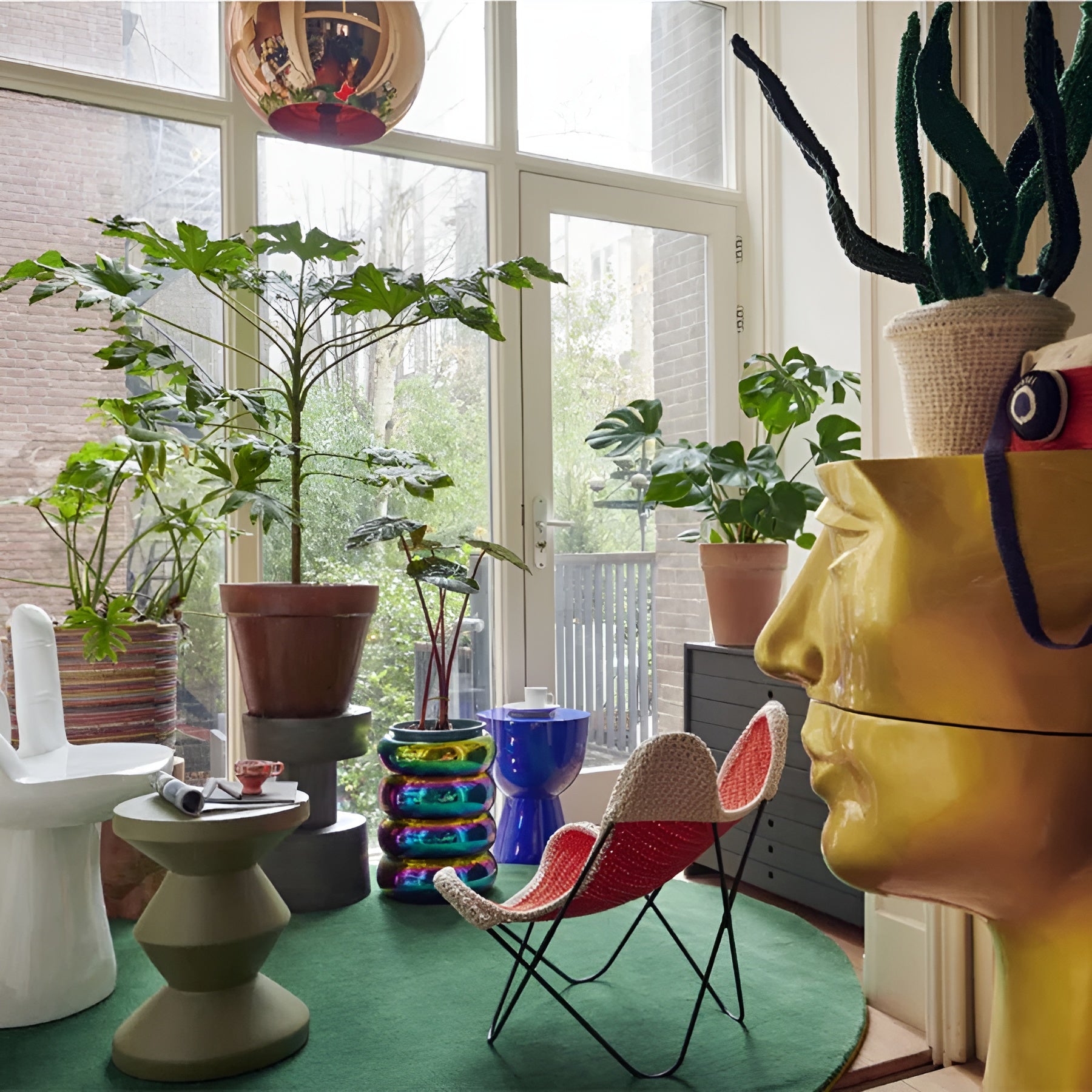 You know the Zig Zag stool as the life of the party – now it's time for it to shine outdoors too! This iconic shape in its outdoor version brings character and energy to any outdoor space. Choose from three matte colors: olive green, white, and dark navy, and create your own eclectic style oasis on the terrace, balcony, or in the garden.