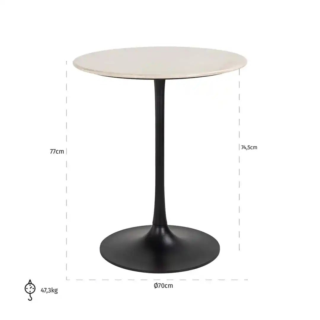 Thanks to its compact dimensions, the table will work perfectly in the kitchen, dining room, or café, adding elegance and sophistication to any arrangement. High-quality marble combined with a solid iron construction guarantees durability, while also providing a unique character that highlights the exceptional atmosphere of the interior.