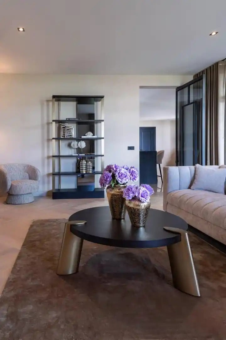 BRODY black coffee table with brass base