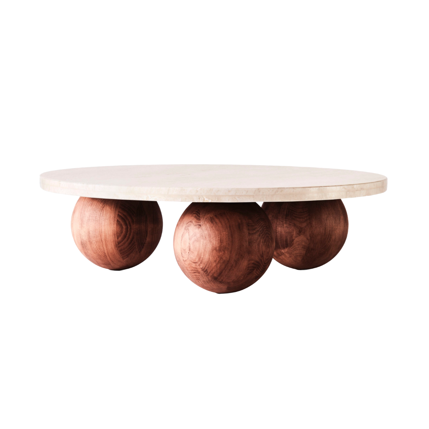 SPHERE coffee table with travertine marble and ash base