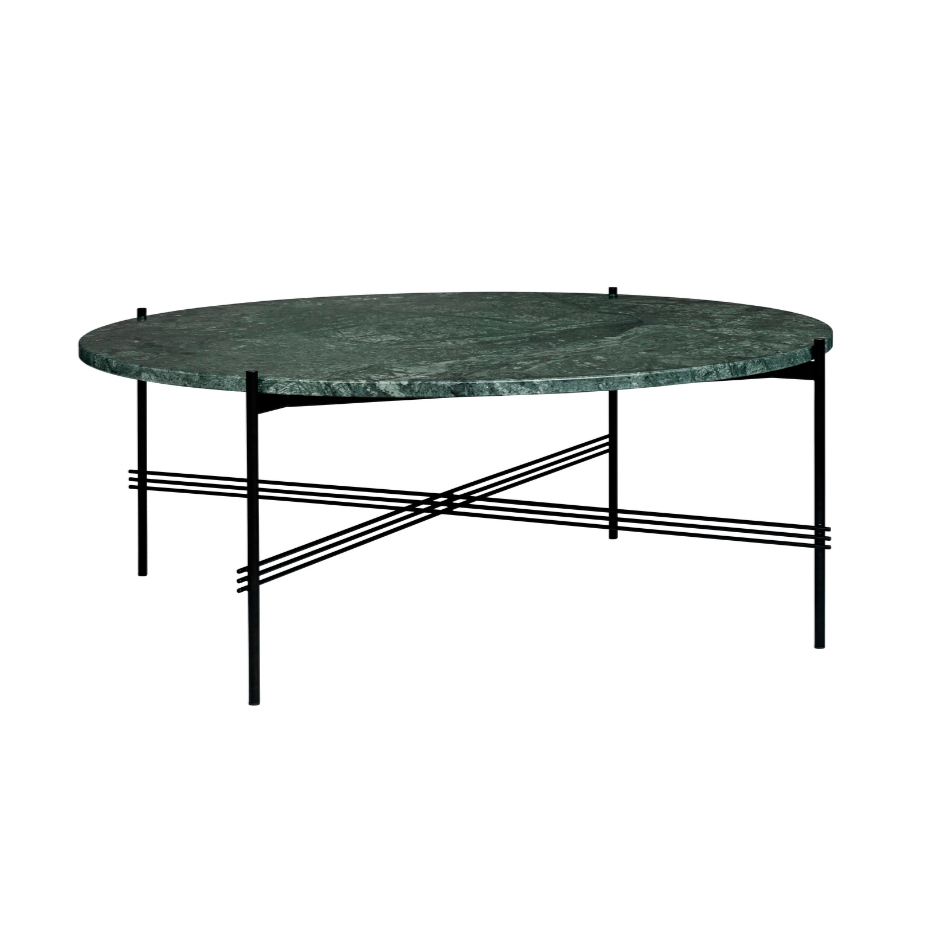 Coffee table TS is a classic of modern design by the Danish-Italian duo GamFratesi. Originally designed for the Copenhagen restaurant The Standard, it combines elegant lightness with striking geometry. The slender legs with a distinctive intersecting detail create a subtle yet solid structure, complemented by a round top made of marble, travertine, or glass – in various colors and finishes.
