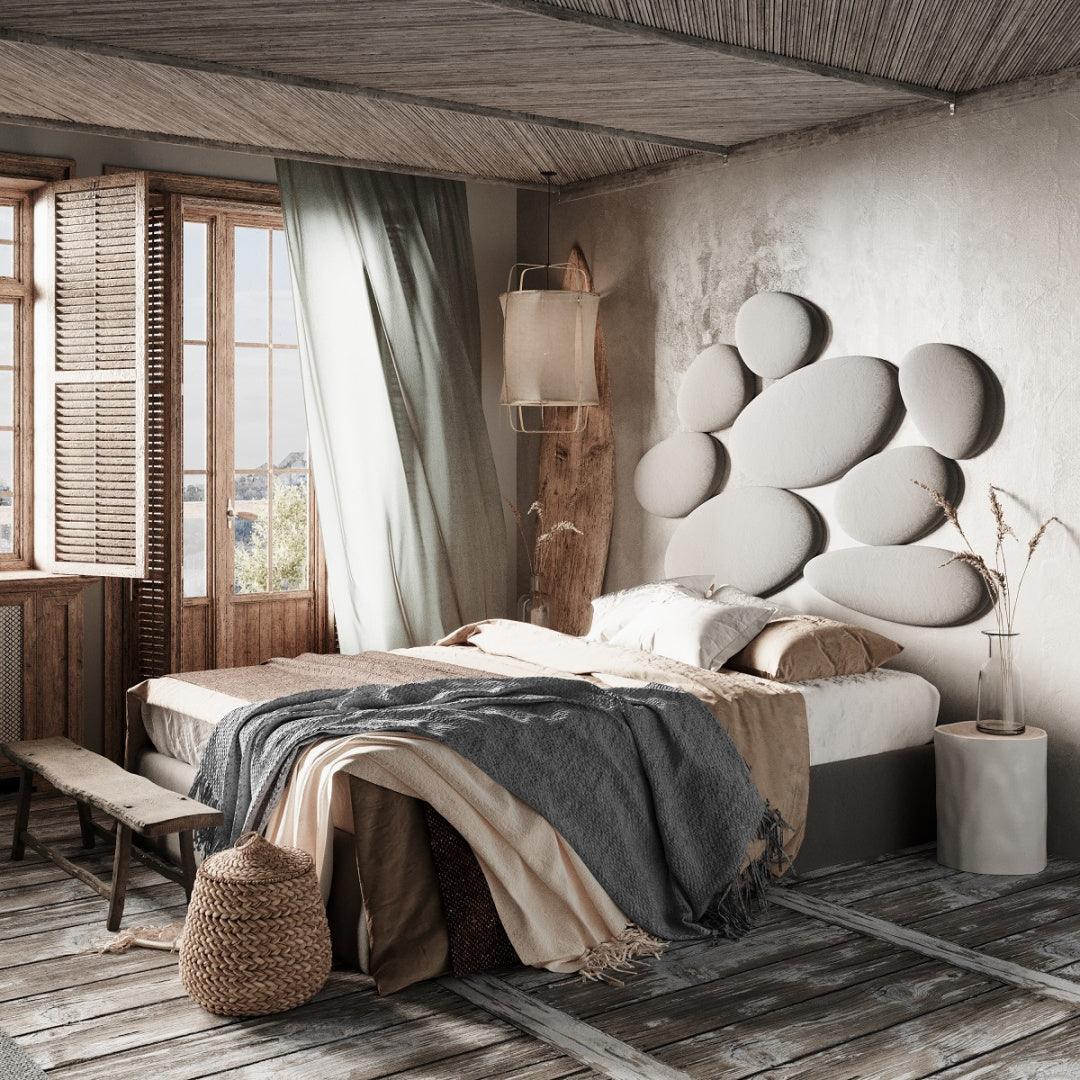 Original headboard for stone bed in the shape of stones. Fits the arranging in the boho or loft style.