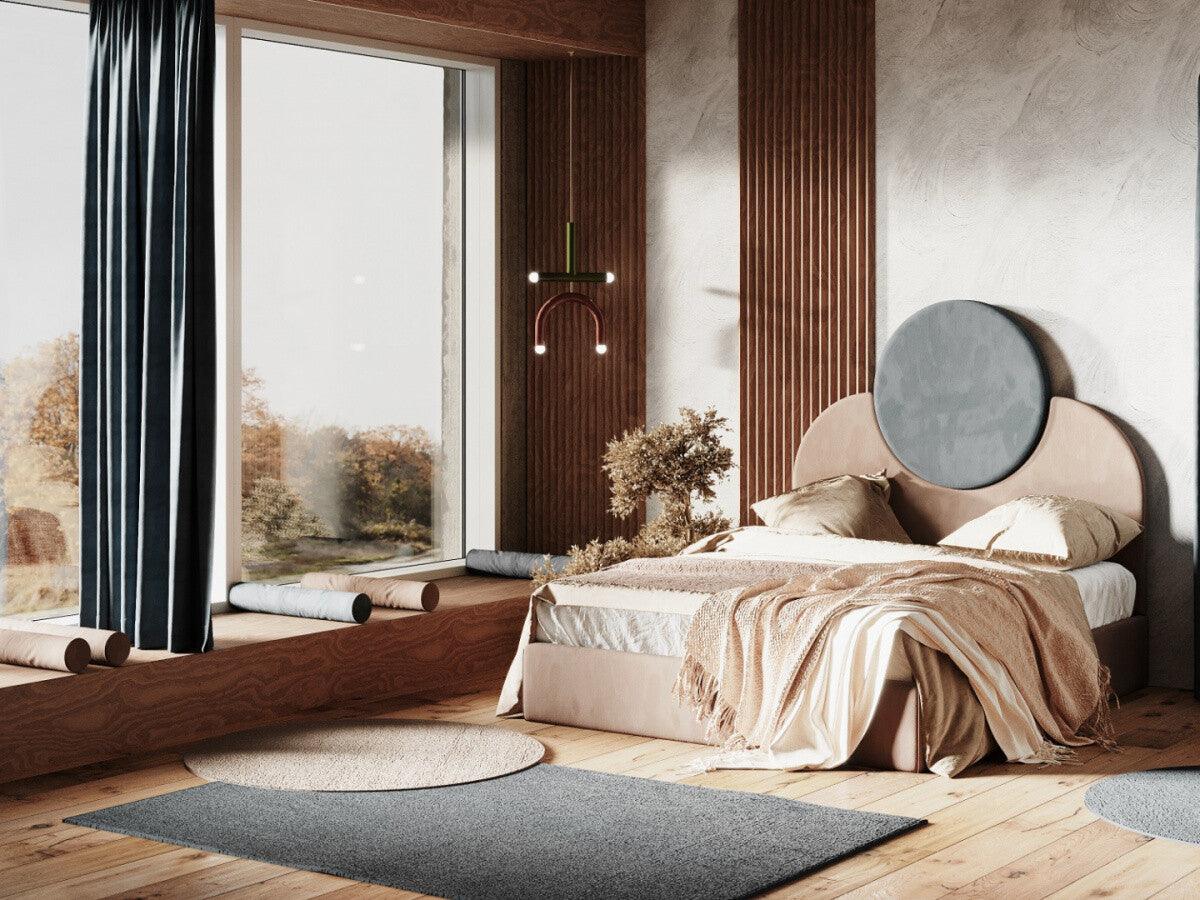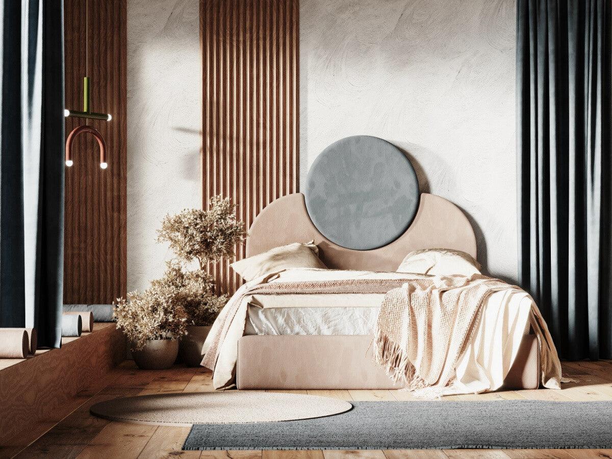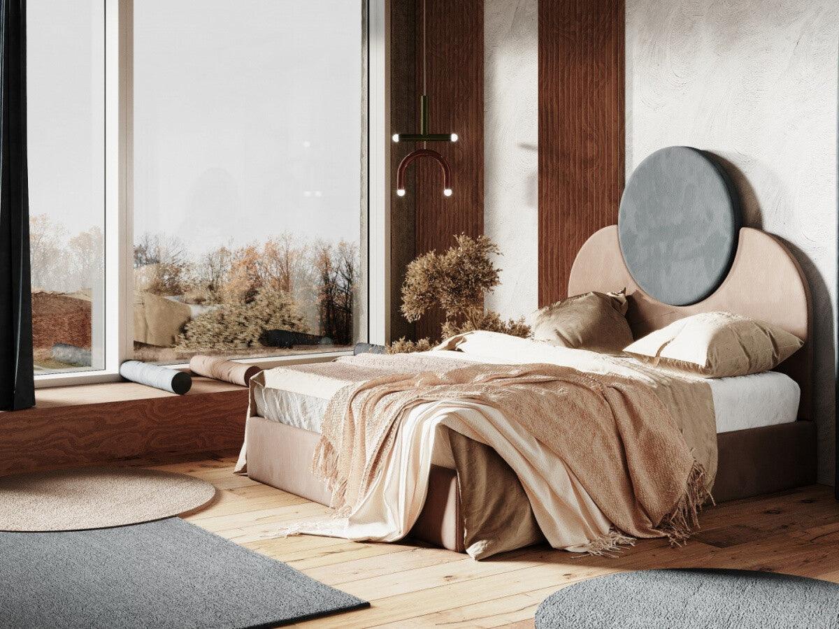 This amazing project Katarzyna Jasyk is the quintessence modern elegance. Unique headboard, which will give the bedroom an original character, resembles the landscape of the setting sun. When you wake up in the morning in such a unique arrangement, the day will immediately become more beautiful.