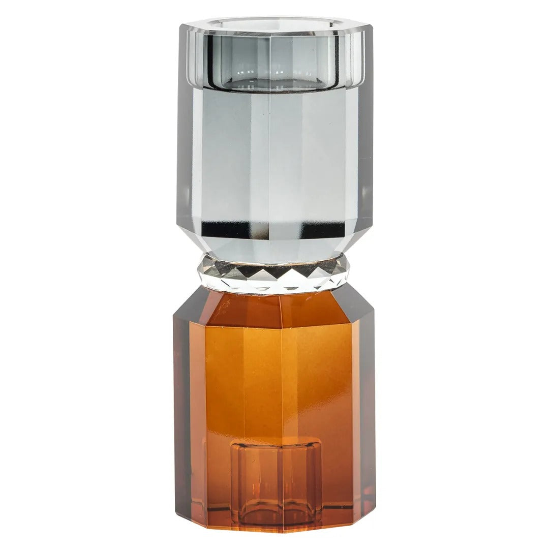 THYRA gray glass candlestick with amber