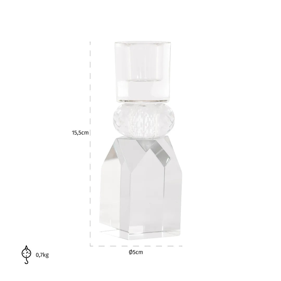 Modern candle holder Yanou made of glass is an original decoration that will add a unique character to your interior. Its geometric shape delights with a unique design and attracts attention.