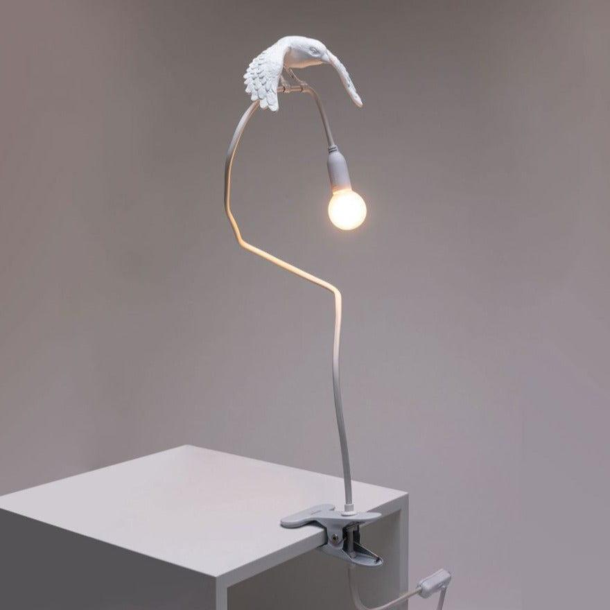 Table lamp with clamp sparrow taking off white