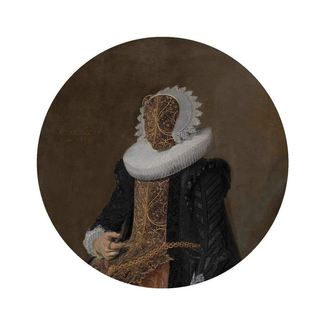 Circle-shaped Mural DOTS - BAROQUE LADY brown