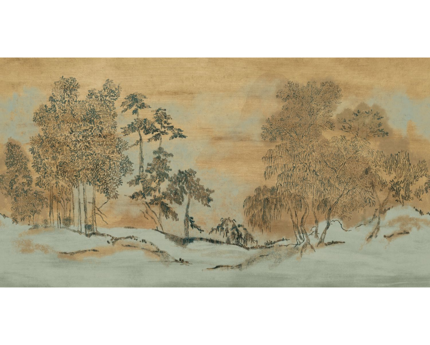 Mural with a Japanese Garden Landscape KORAKU brown-green