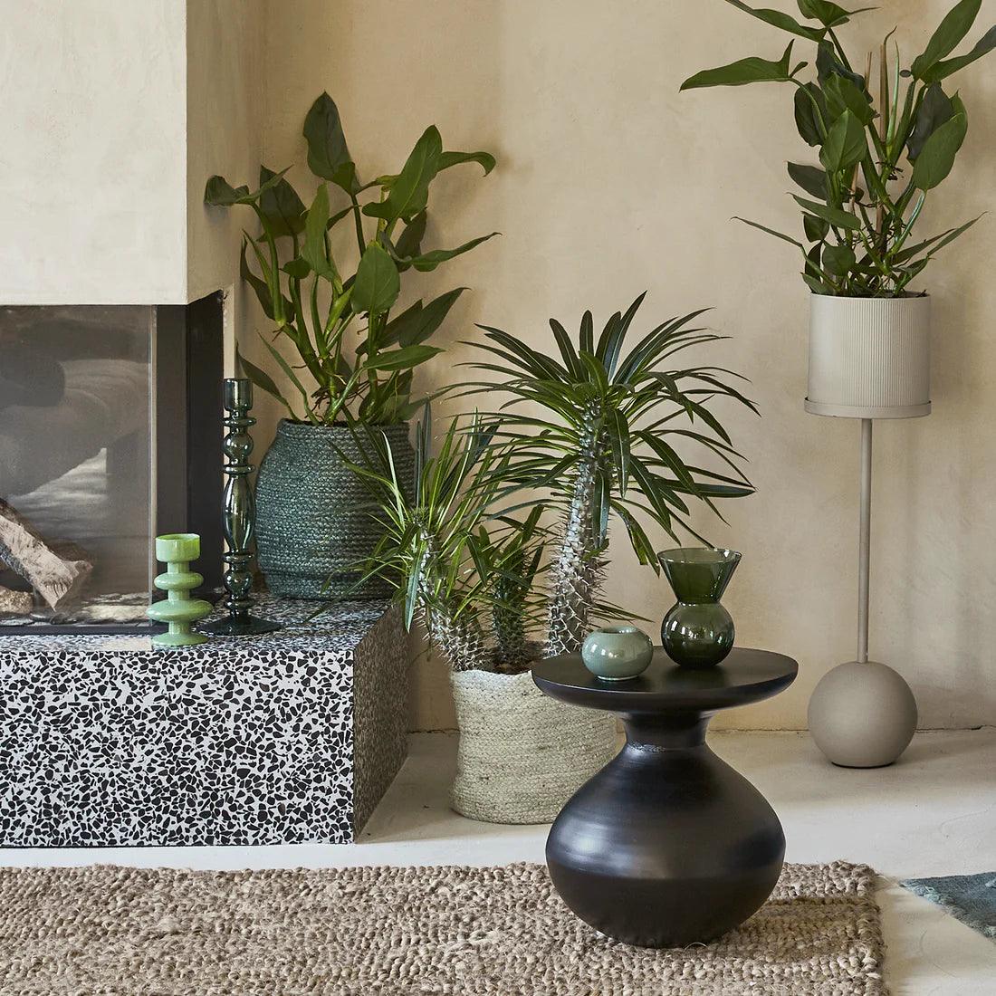 Table Tummy has gained its name from the bug shape that attracts attention. Despite the severity of material and color, its pleasant to the eye, regular shape gives it a classic character. Made of iron, a slightly visible texture recalls associations with hand -formed clay vessels.