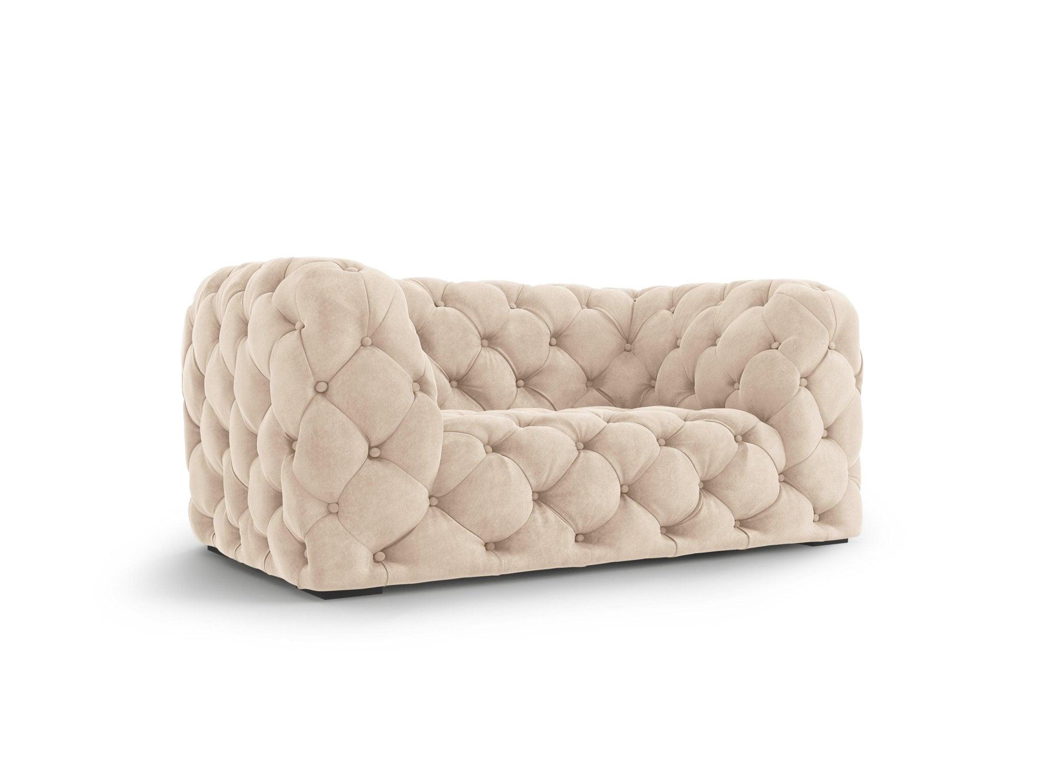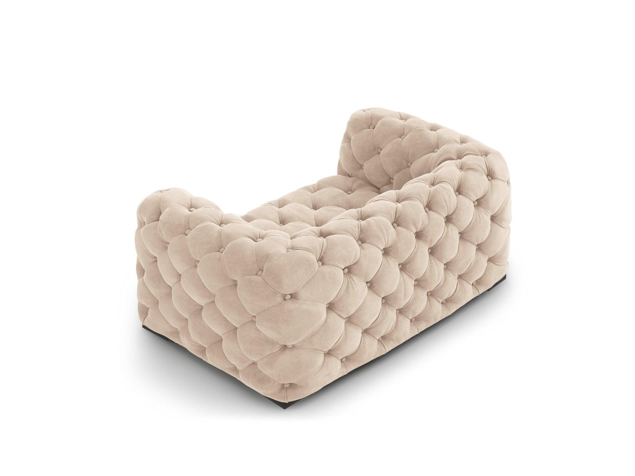 Velvet armchair Loge is an extraordinary combination of classic form with a touch of opulence. Its unique design will stand out in any living room and bring a hint of elegance to the space. The deep tufting and additional square-shaped stitching are accentuated by decorative buttons.