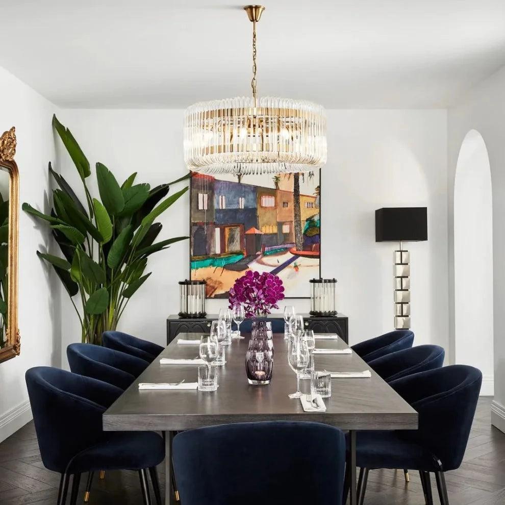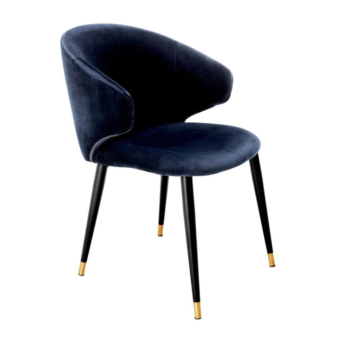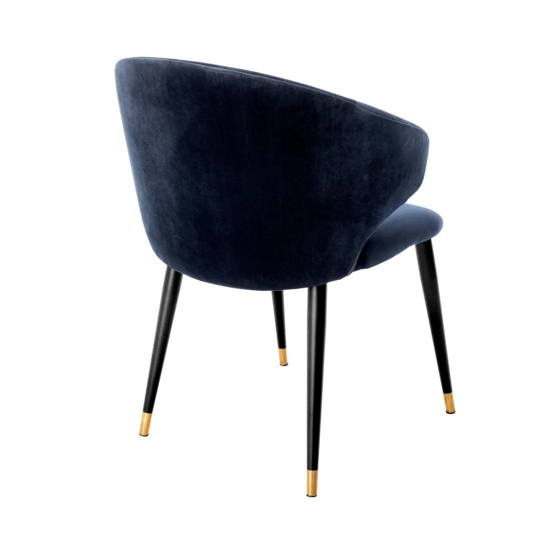 Its frame is like the silhouette of an elegant evening gown - eye-catching, yet not overpowering. Tapered legs, adorned with brass caps, dance with a lightness reminiscent of jazz rhythms. And what about the seat? The navy velvet upholstery of the Roche chair is like the soft, velvety voice of Ella Fitzgerald - full of depth, warmth, and subtlety. But Volante is not just a soloist on the stage of your dining room. Combine different chairs from this series, and you will create a harmonious choir that sings the song of charming vintage style, delighting every guest.
