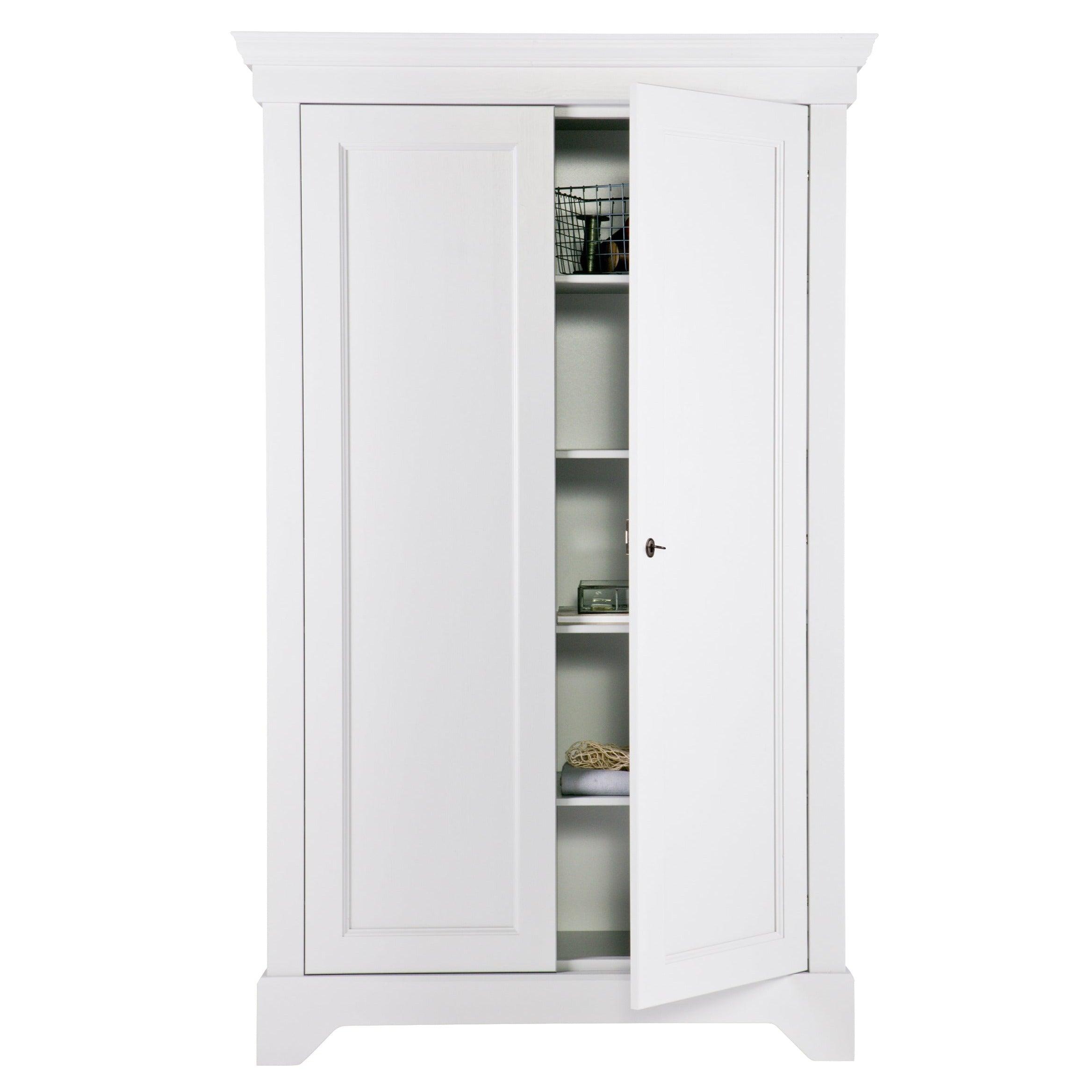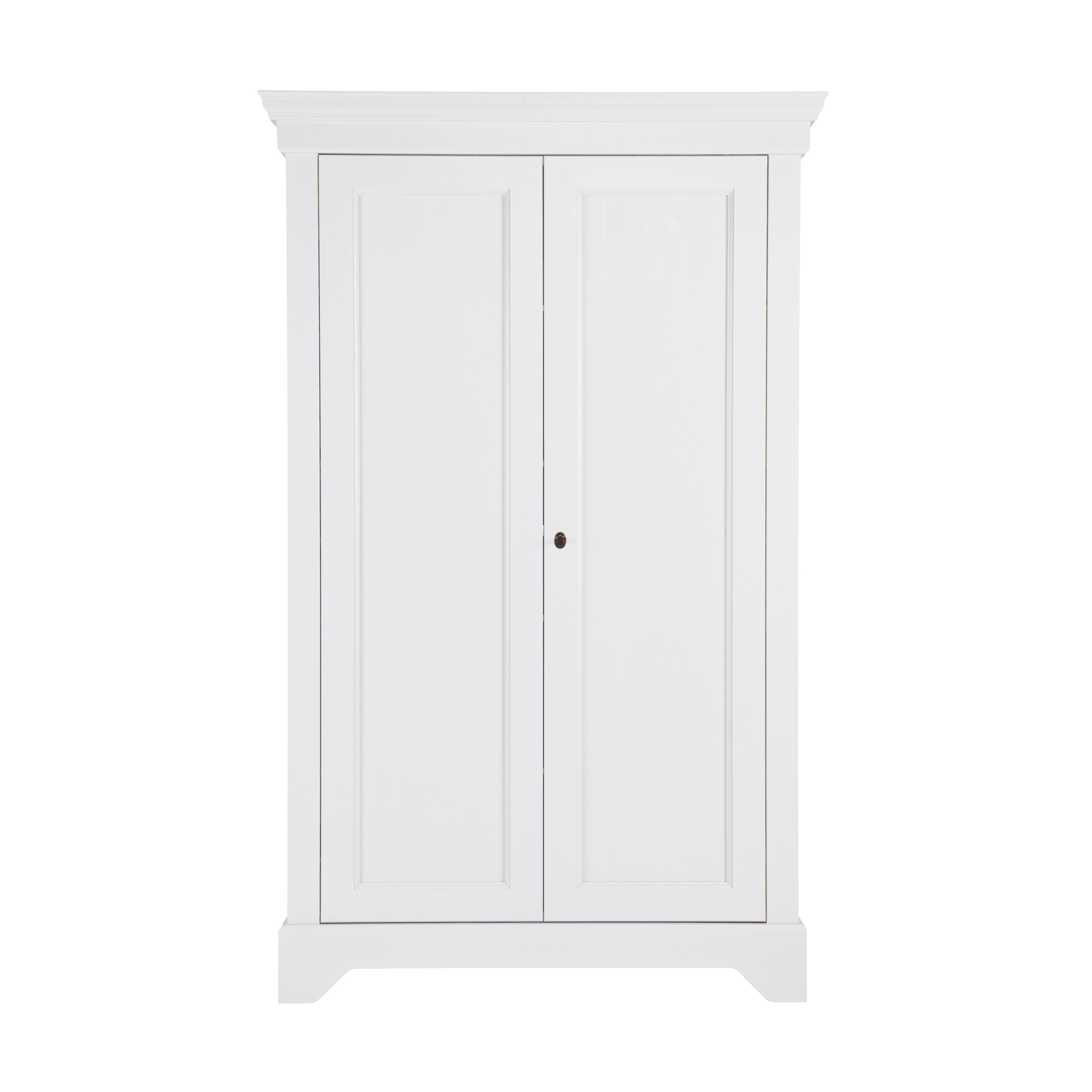 The white Isabel wardrobe is made from durable materials that ensure its longevity and durability. The two doors open easily, revealing a storage space that is spacious enough to hold everything you need - from clothes to bedding or towels.