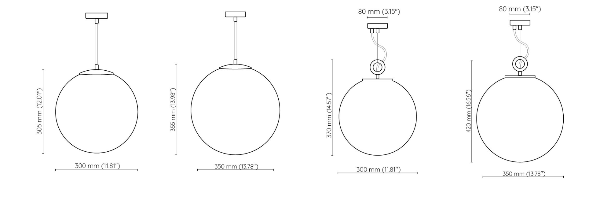 Elegance adds a shiny, brass finish, which takes on charm over time, thanks to the emerging patina. Additionally lamp The white ball is produced in two sizes of the lampshade - 30 or 35 cm in diameter, which allows you to easily compose it both in groups and individually.