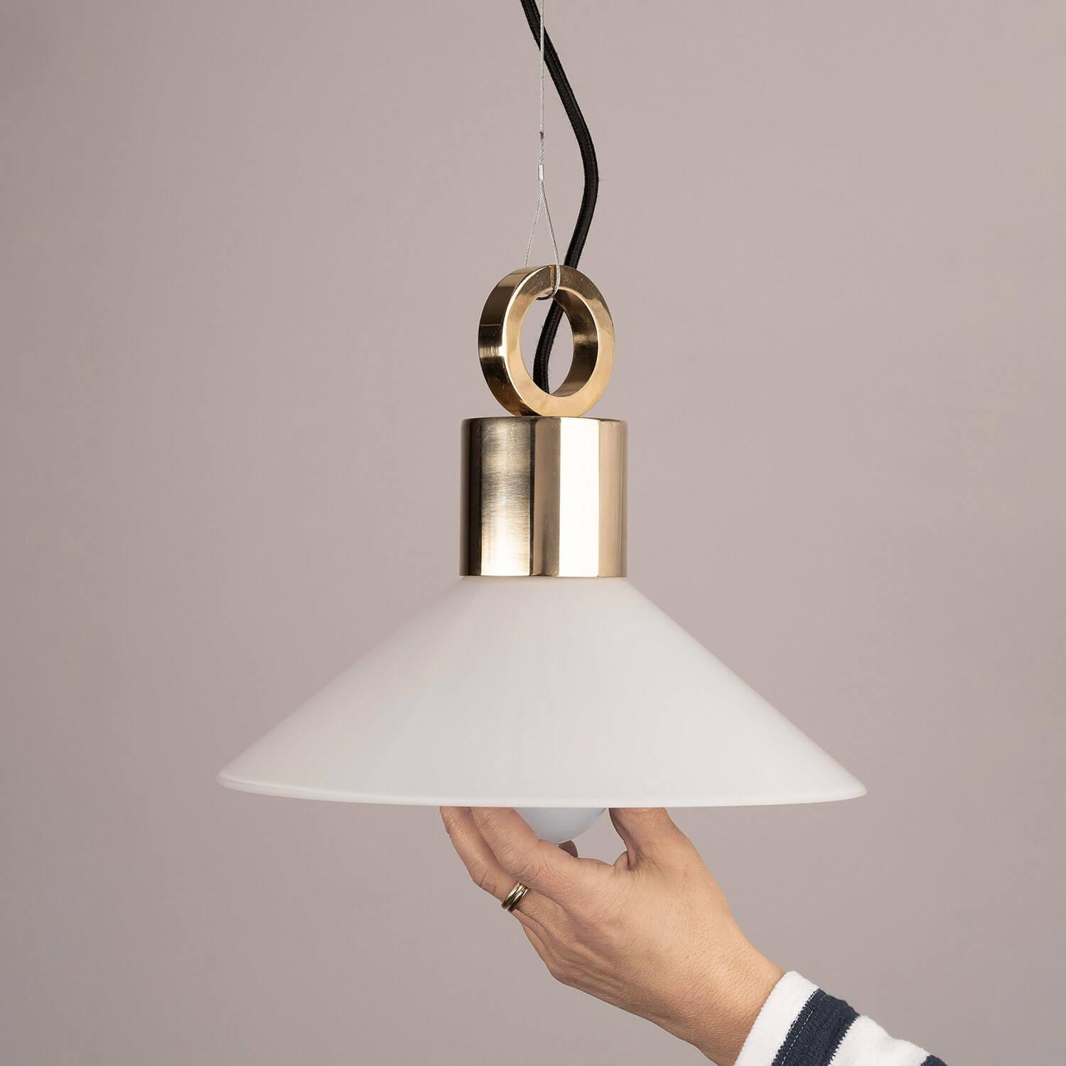 Shade white lamp, made of three -layer opal glass, offers an unusual dispersion of light, creating a subtle and pleasant effect in the room. Each lampshade is manually blown by experienced craftsmen from a local steelworks, which guarantees the unique character of each lamp. In addition, the lid from solid brass gives the lamp Oslo solidity and elegance, and its natural patina only adds charm over time.