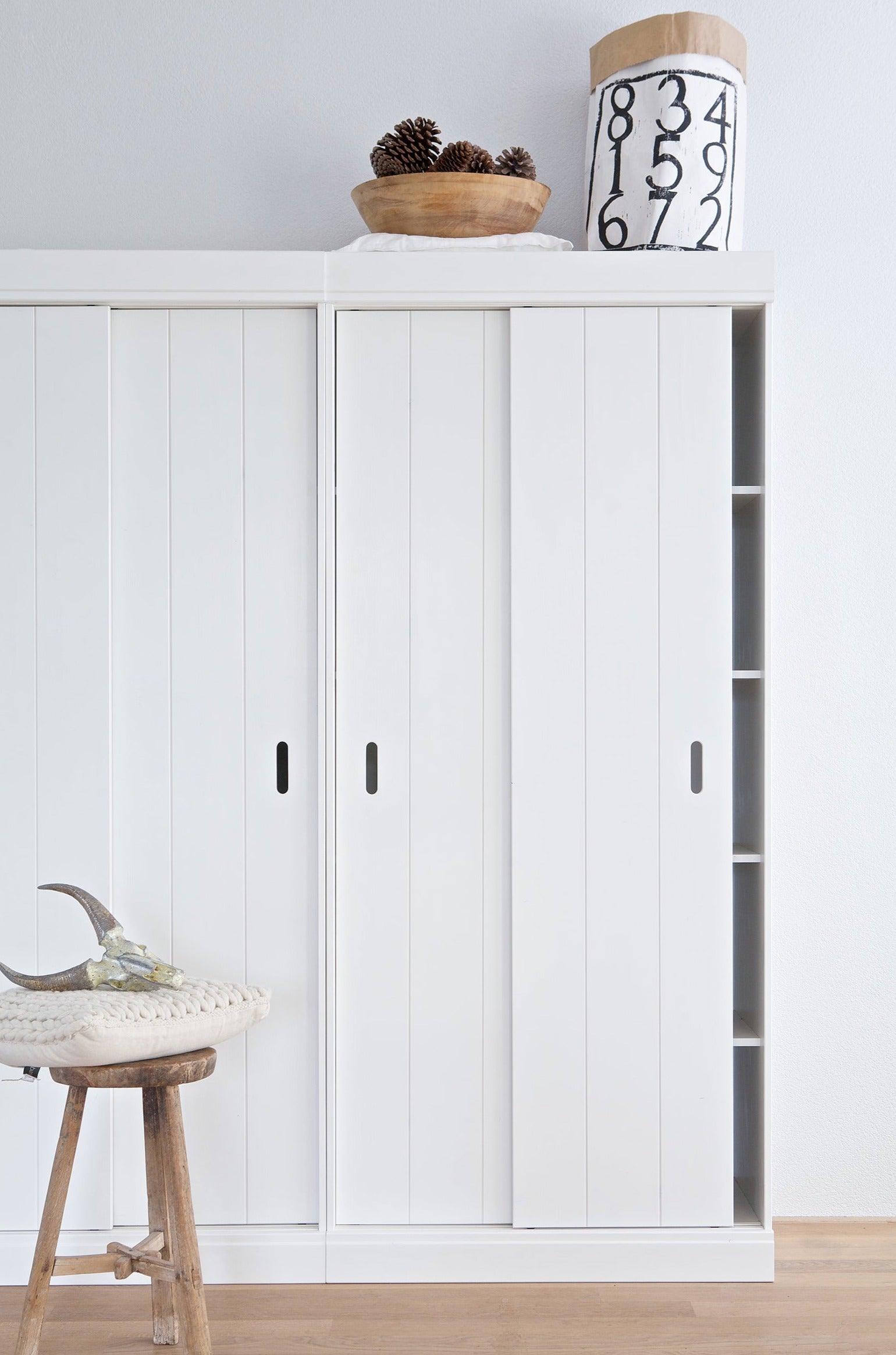 White Row wardrobe is made from durable materials that ensure its longevity and durability. Two doors slide open effortlessly, revealing a storage space that is spacious enough to hold everything you need - from clothes to bedding or towels.