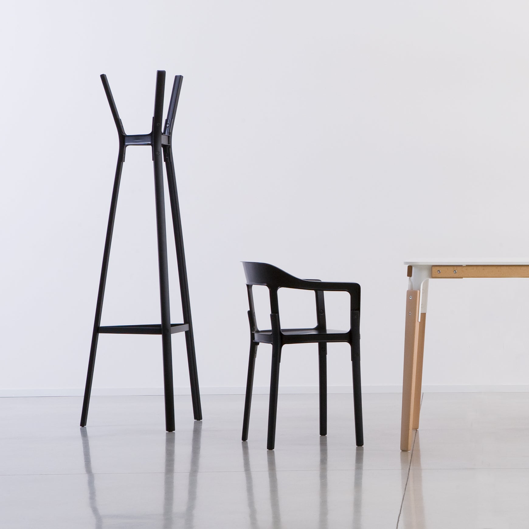 STEELWOOD standing coat rack, beech wood with black connections