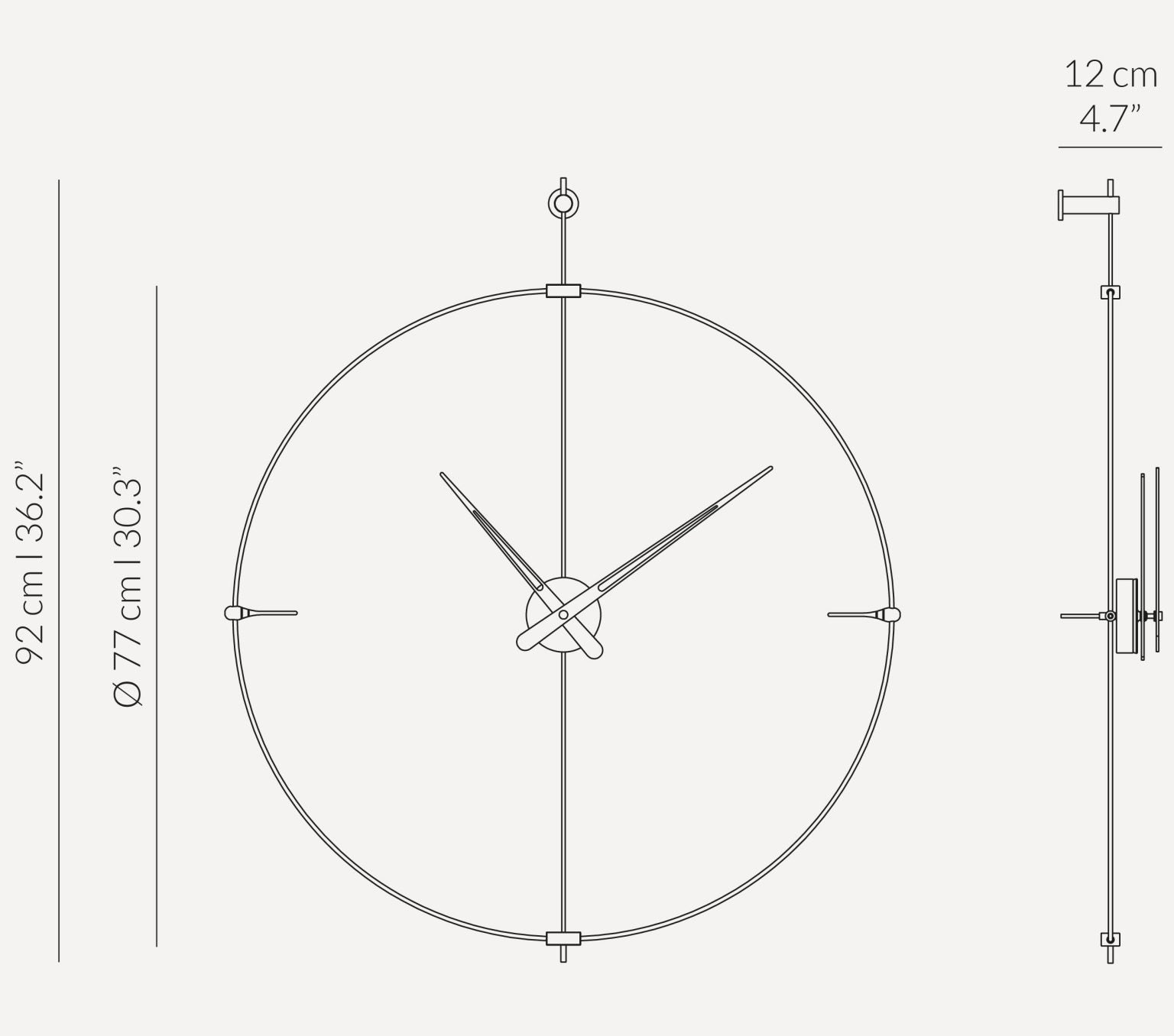 Wall Clock Mini Bilbao is a minimalist interpretation of the iconic Aros collection, where the light rim and hand-turned walnut indices give the whole a subtle, contemporary character. The thin, precise line of the circumference emphasizes the elegance of the design, and the refined details make this designer wall clock a sophisticated accent in any interior. It is a model that combines simplicity of form with artisanal quality of craftsmanship.