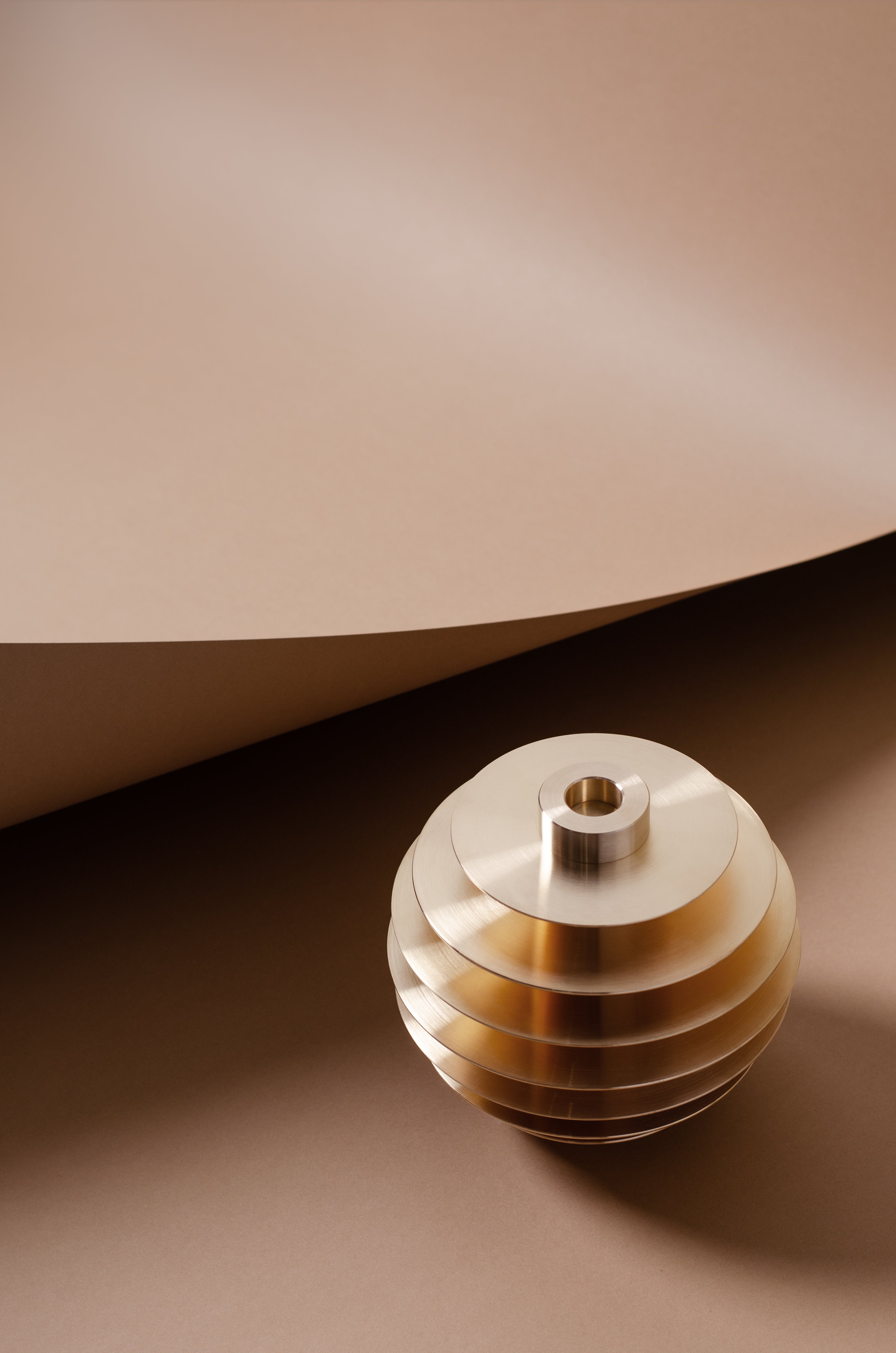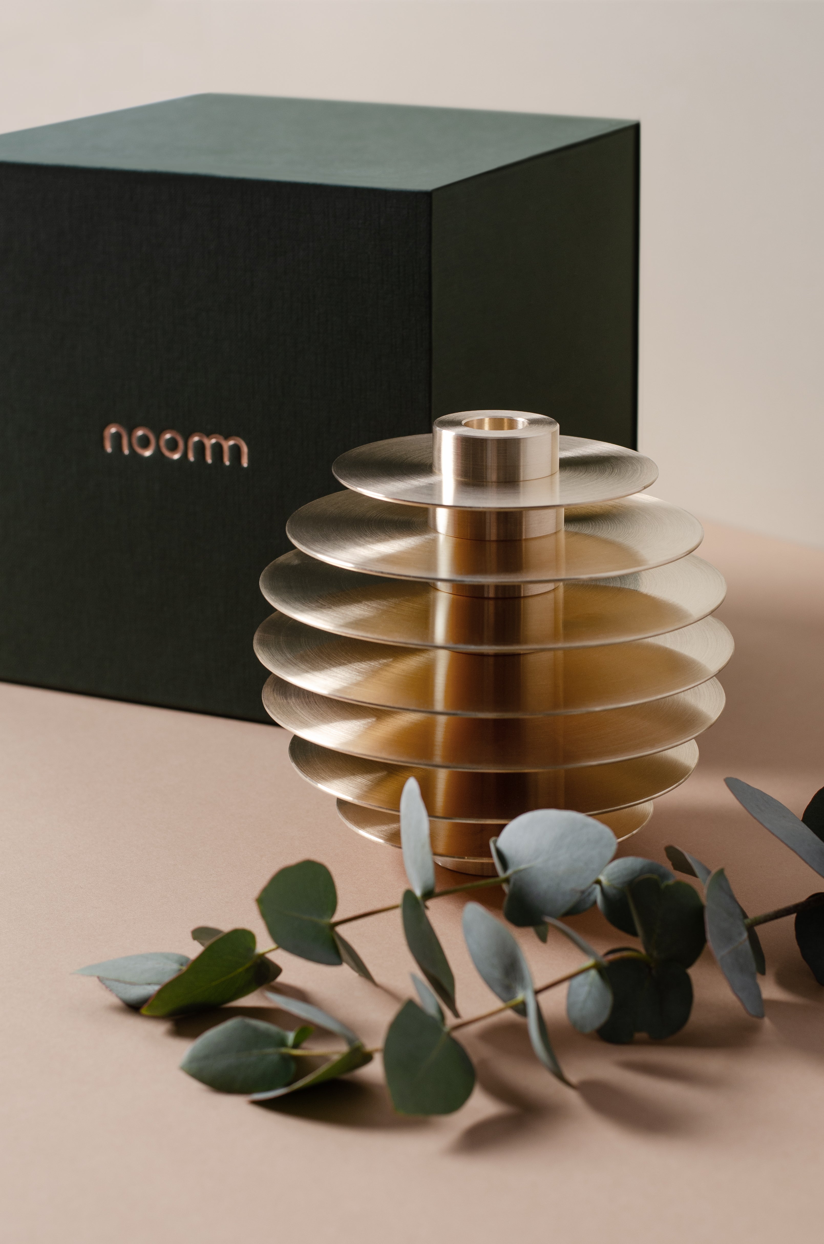 The inspiration for the collection, its shape, and the number of candleholders comes from the mysterious nature of the universe. "I believe the universe is pure geometry - essentially a beautiful shape twisting and dancing in space-time," says designer Kateryna Sokolova. The shape of the sculpture, as well as the name of the collection, allude to the perfect circular form of the celestial sphere, which is also reflected in the name of the company - Noom, which semantically refers to the far side of the Moon.