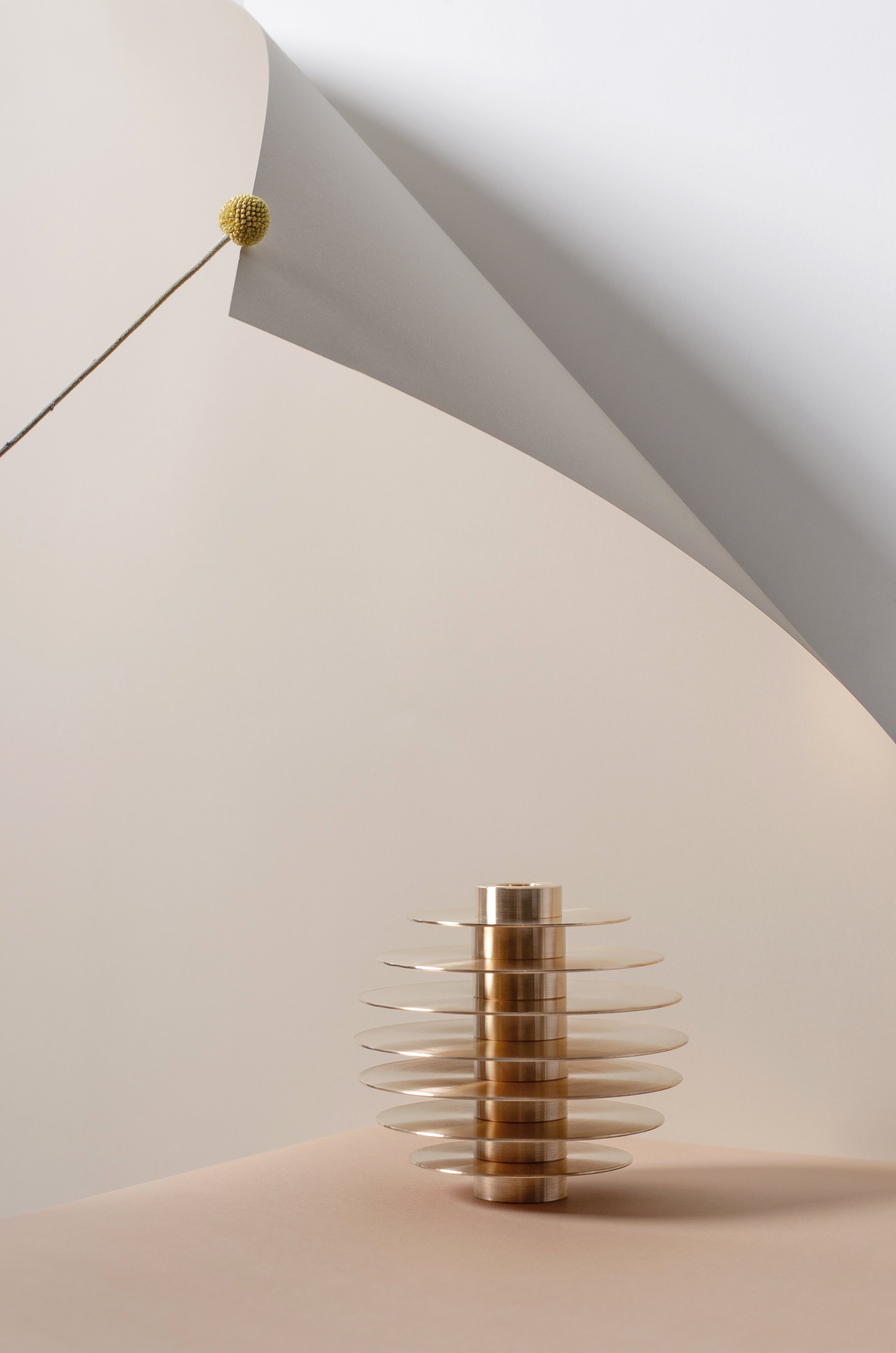 The ORB Candleholder Set is a modern sculpture consisting of seven metal candle holders, stacked one on top of the other, creating a circular form. Designed with functionality in mind, each candleholder features two sides that can accommodate both long and tealight candles. The set is available in brass or stainless steel versions, making it a stunning addition as a series of seven candleholders or as a standalone sculpture in any interior.