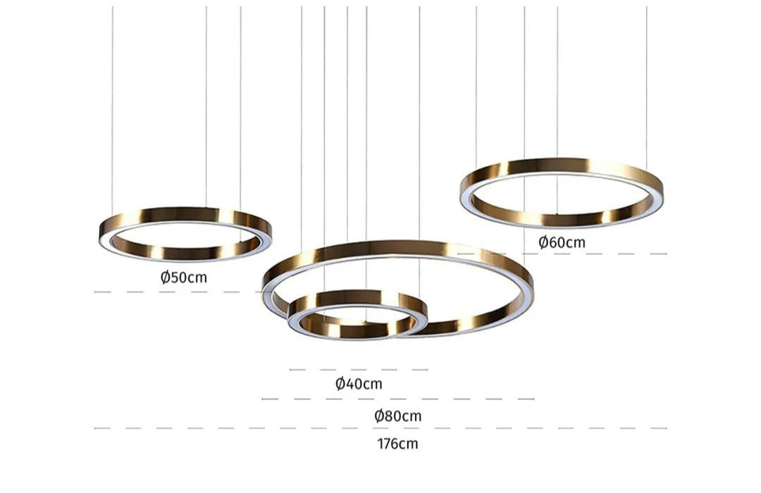 Modern chandelier Lilou in brushed gold is a luxurious lighting fixture that captivates with its elegance and striking design. Its form, consisting of several rings suspended at different heights, beautifully complements spacious interiors, creating a unique lighting arrangement. The warm light color of 2700 K introduces a cozy atmosphere, making it perfect for the living room, dining room, or above the table.