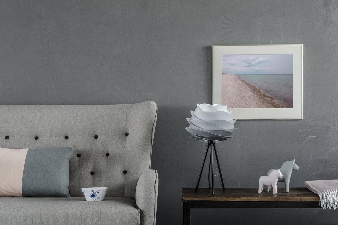 Abažúr Carmina bol inšpirovaný jemnými, pomalými pohybmi piesku na pobreží Dánska, s ich malebnými líniami. Carmina prináša harmonický, plynulý dizajn do surového, minimalistického štýlu severnej estetiky.