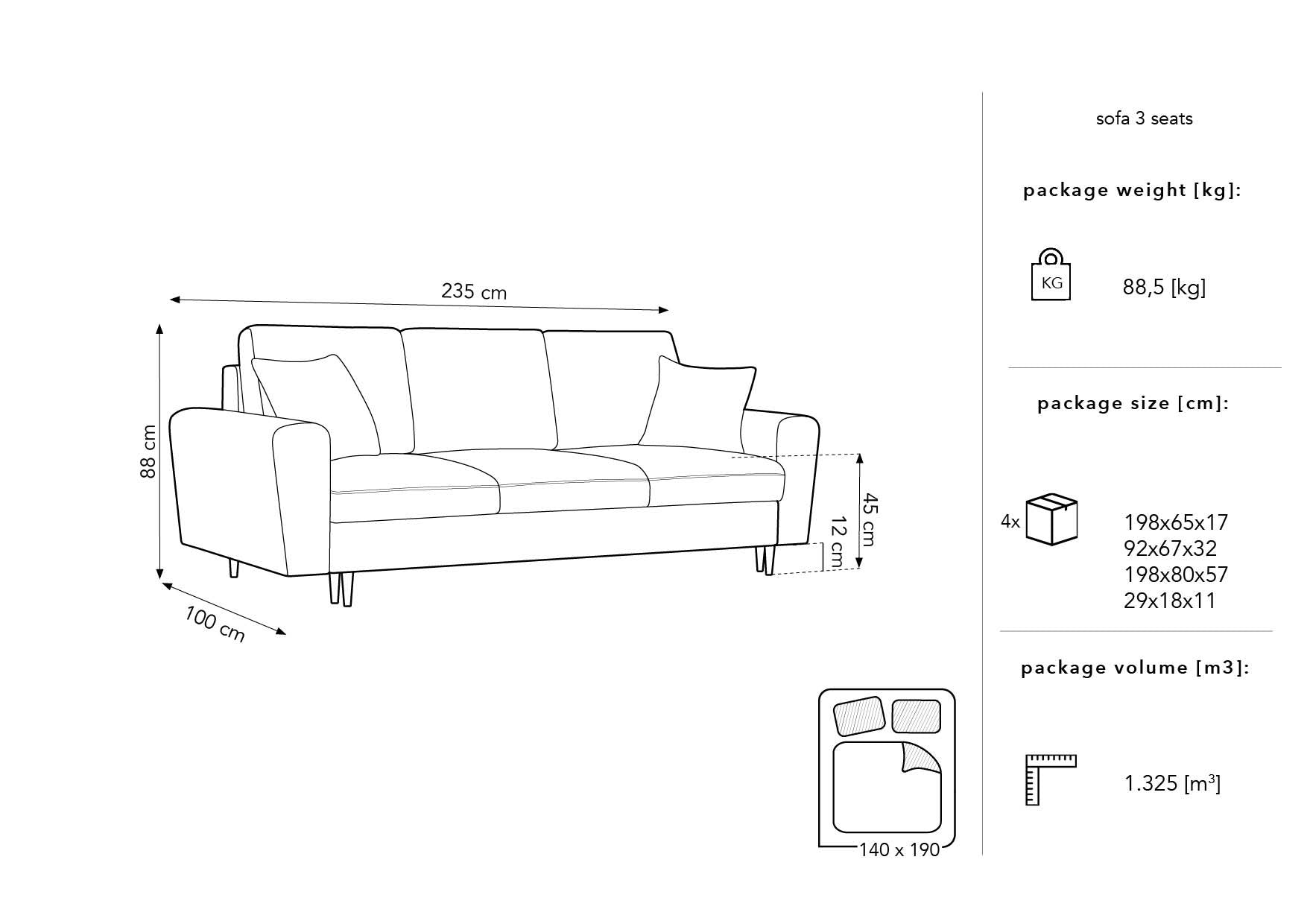 Powierzchnia spania: 190 cm x 140 cm