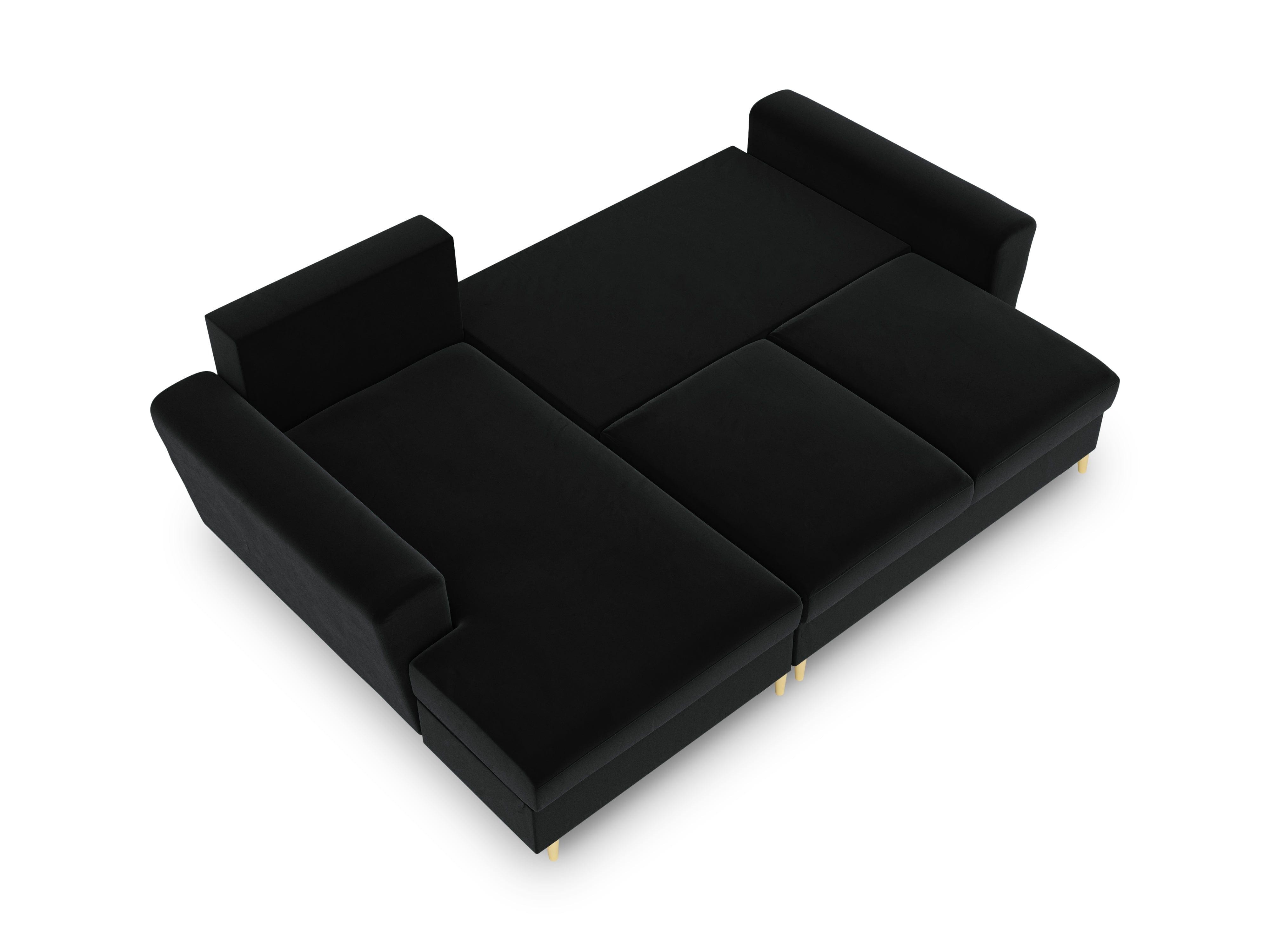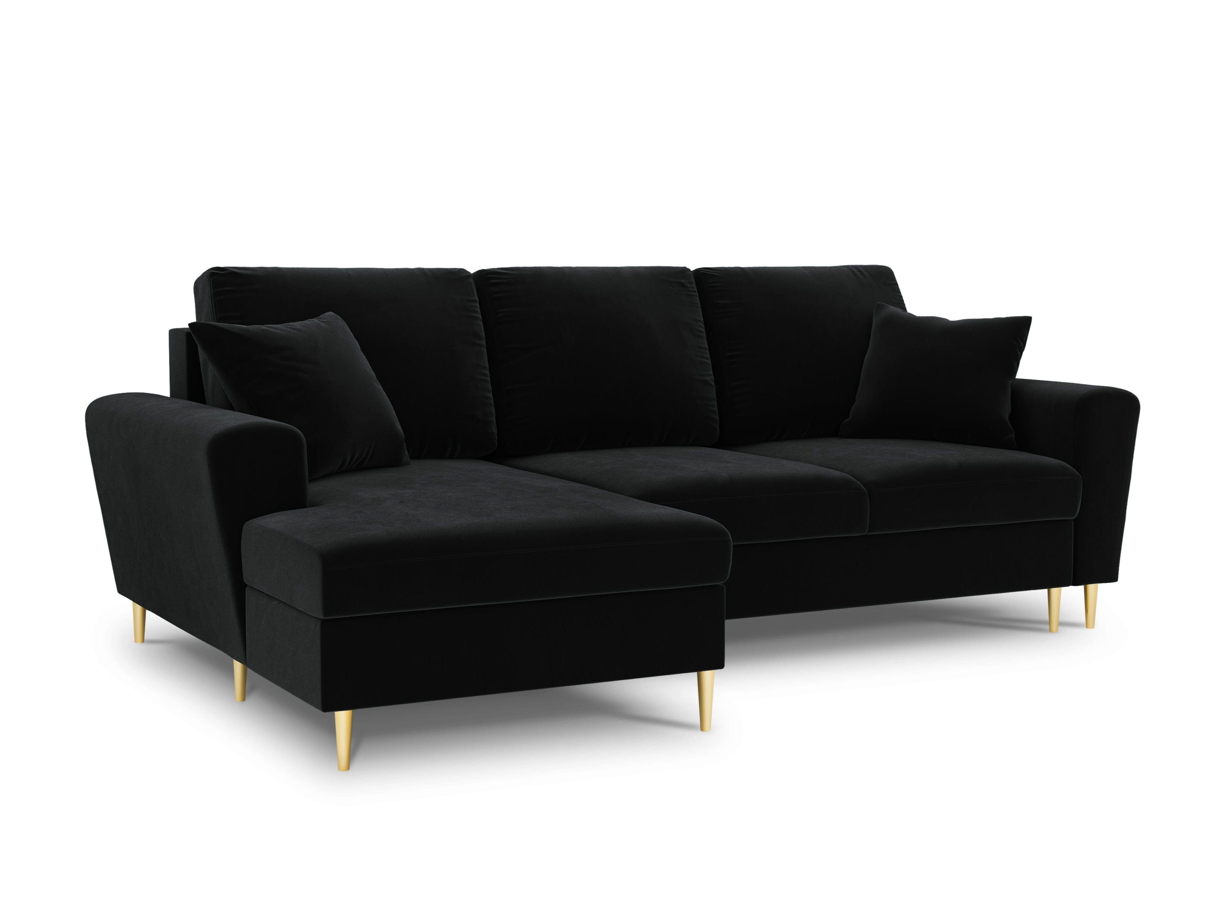 Narożnik lewostronny aksamitny z funkcją spania KYOTO czarny ze złotą podstawą