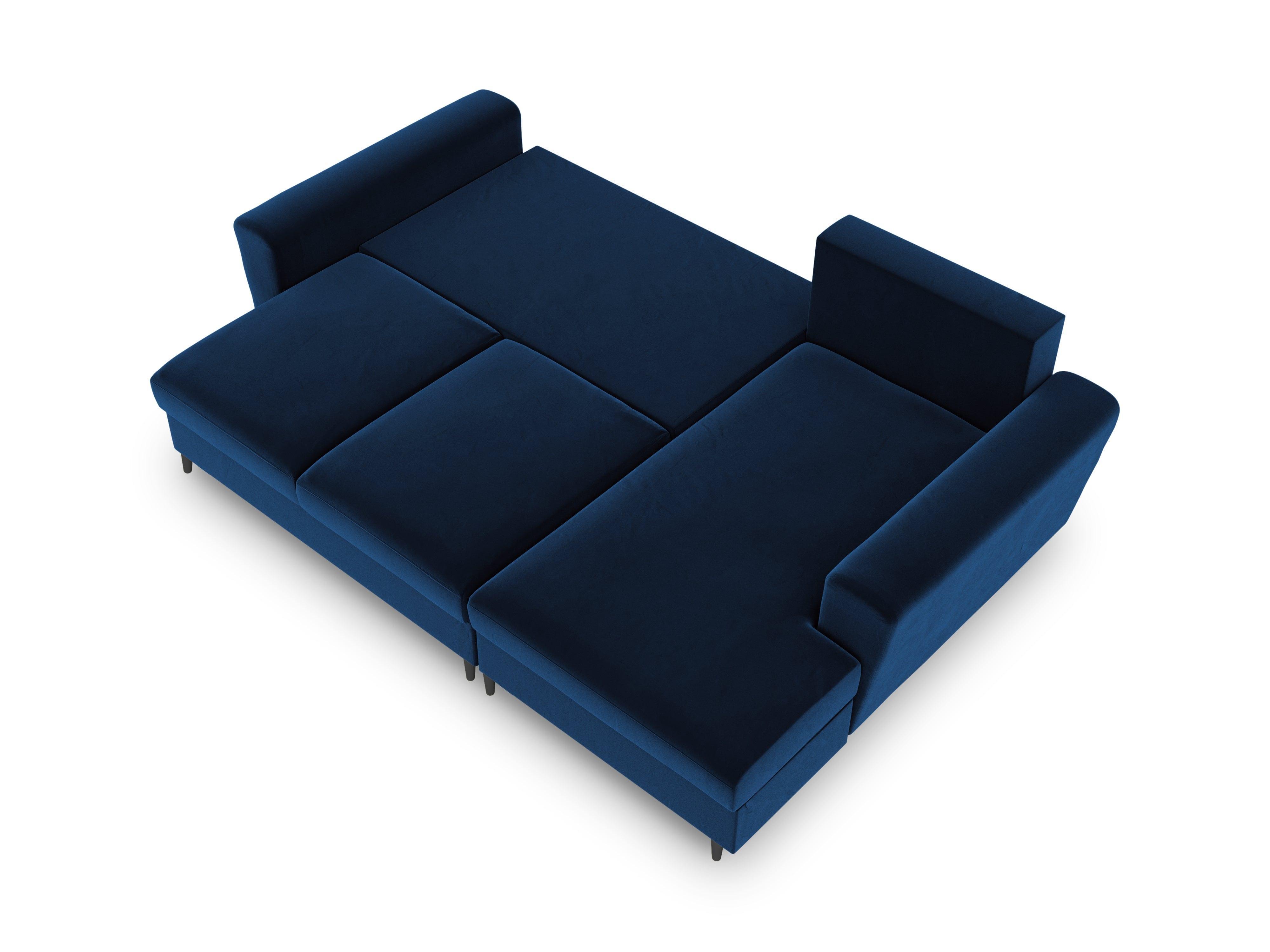Narożnik prawostronny aksamitny z funkcją spania KYOTO niebieski z czarną podstawą