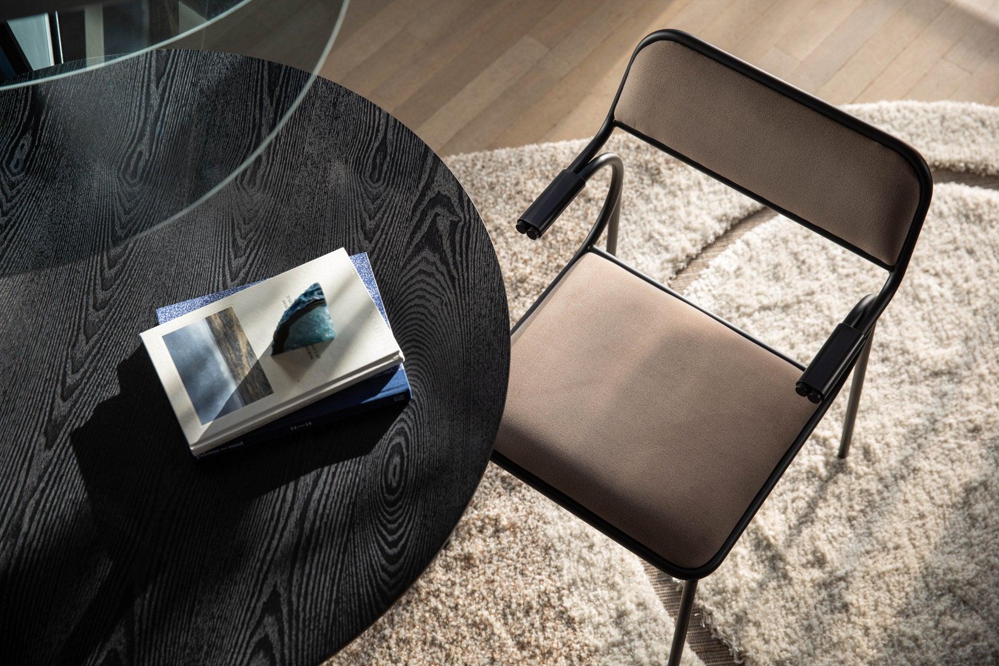 Alba znamená východ slnka po taliansky, čo odkazuje na zakrivený rám. Trávte rána pri jedálenskom stole, tešiac sa na prichádzajúci deň vo výnimočnom stoličke Alba. Matný čierny kovový rám s výraznými zakrivenými opierkami rúk poskytuje pohodlnú oporu. Čalúnené mäkkým zamatom sedadlo a operadlo zabezpečujú vynikajúce pohodlie.