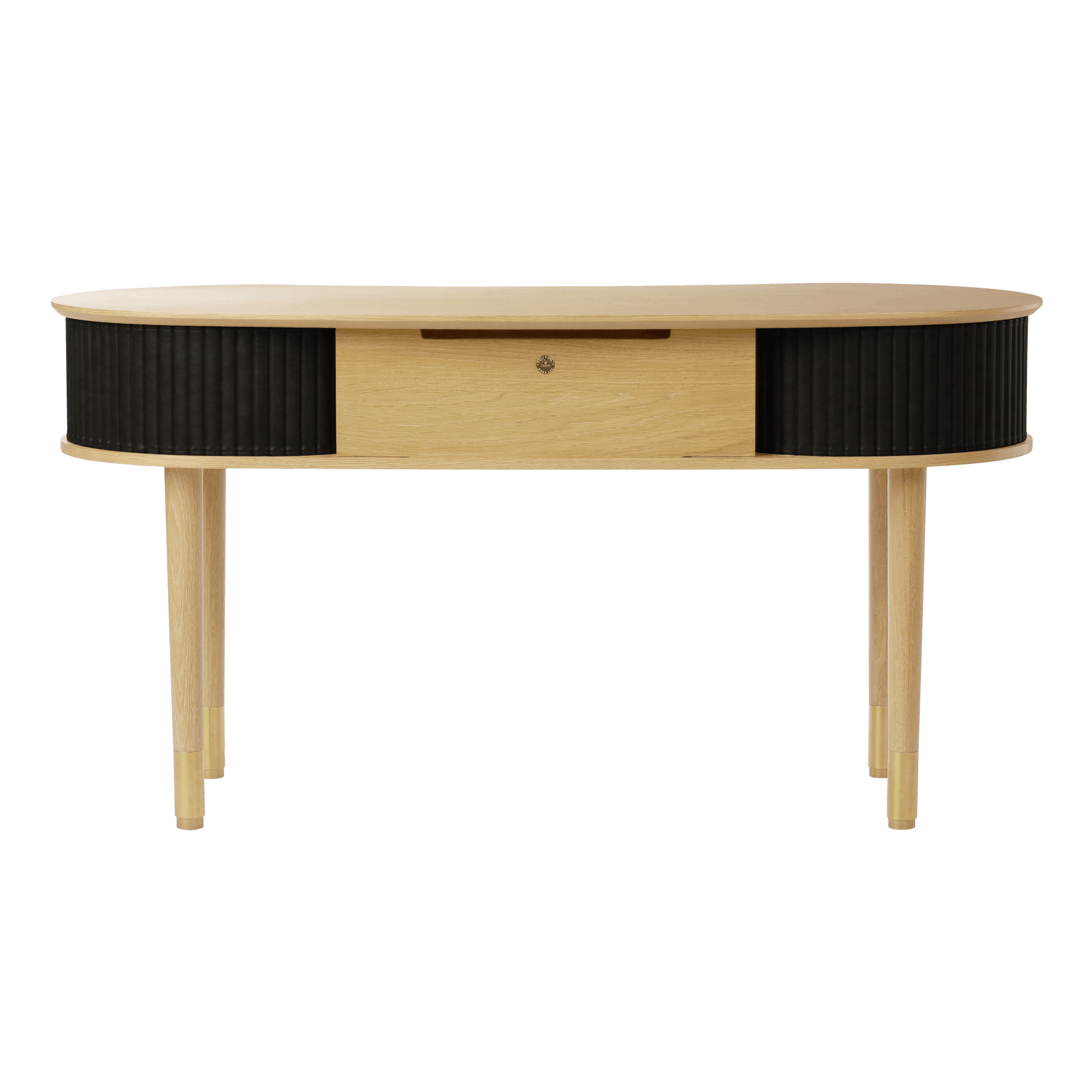 Písací stôl Audacious je nadčasový kancelársky nábytok s výnimočnými detailmi, ktoré podporujú efektivitu práce a prispievajú k poriadku na pracovisku. Jeho jemne zakrivená, organická forma odkazuje na škandinávsky minimalizmus, zatiaľ čo posúvacie látkové žalúzie pridávajú nádych súčasnej nostalgie, vytvárajúc harmonické spojenie medzi tradíciou a modernou.
