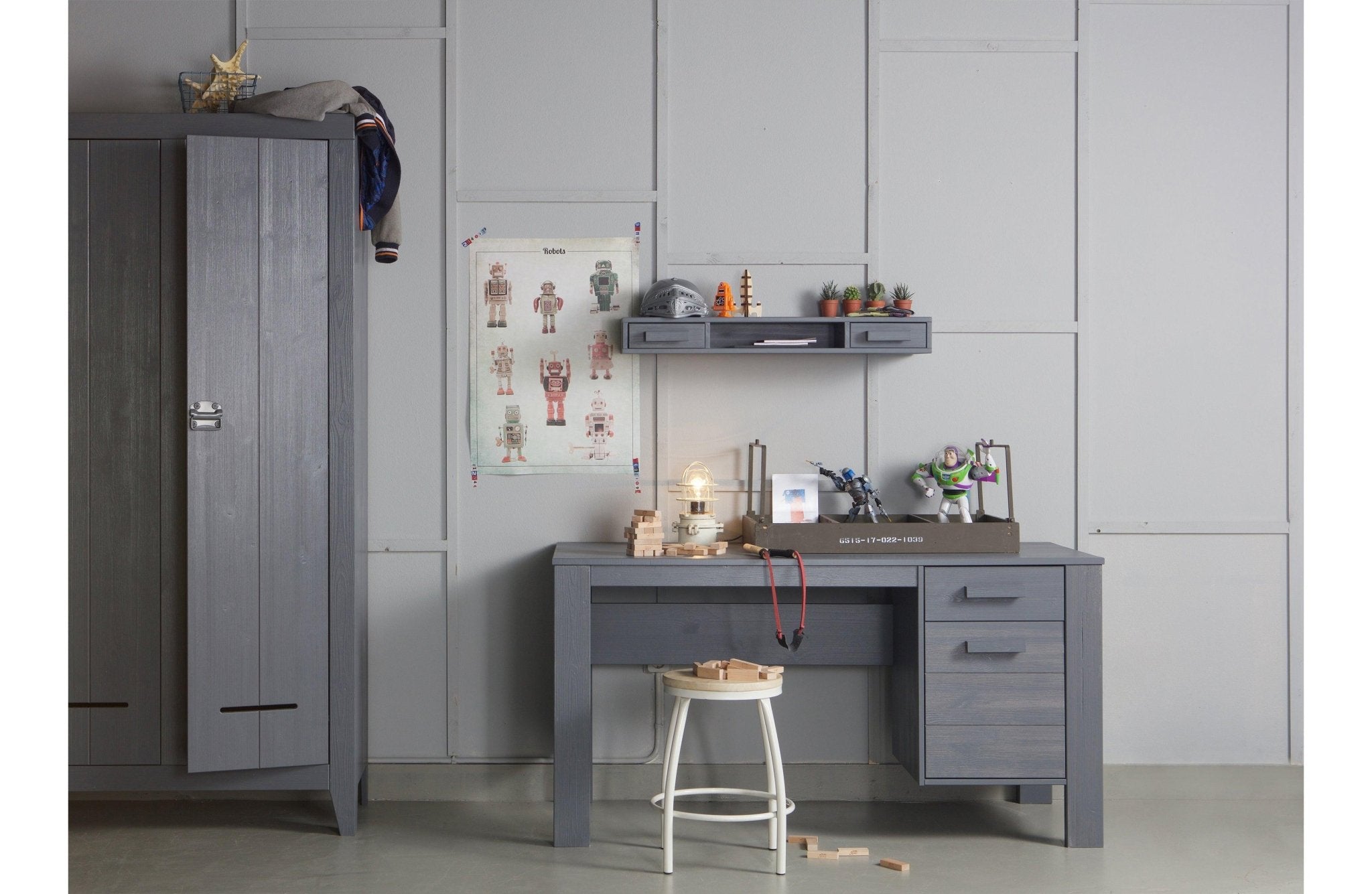 Písací stôl Dennis v grafitovej farbe je ideálnou kombináciou jednoduchosti, funkčnosti a škandinávskeho štýlu. Vďaka svojim kompaktným rozmerom sa skvele hodí do menších priestorov, pričom im dodáva ľahkosť a sviežosť.