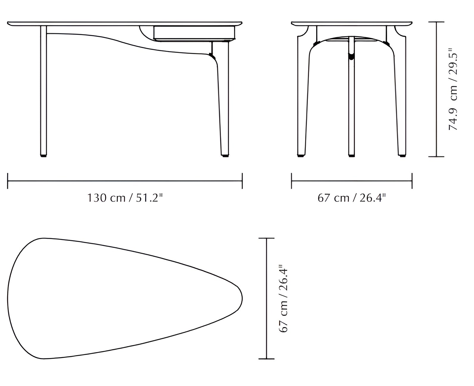 Organická forma dosky v tvare mäkkého trojuholníka dodáva nábytku ľahkosť, a zároveň zabezpečuje, že písací stôl je priestranný a pohodlný – ideálny na prácu s dokumentmi, počítačom či skicami. Vysúvateľná zásuvka skrytá pod doskou diskrétne uschová nevyhnutné kancelárske potreby, čím zabezpečuje poriadok. Vďaka subtílnej forme sa Duende hodí nielen do spálne alebo obývačky, ale aj do domácej kancelárie či ateliéru.