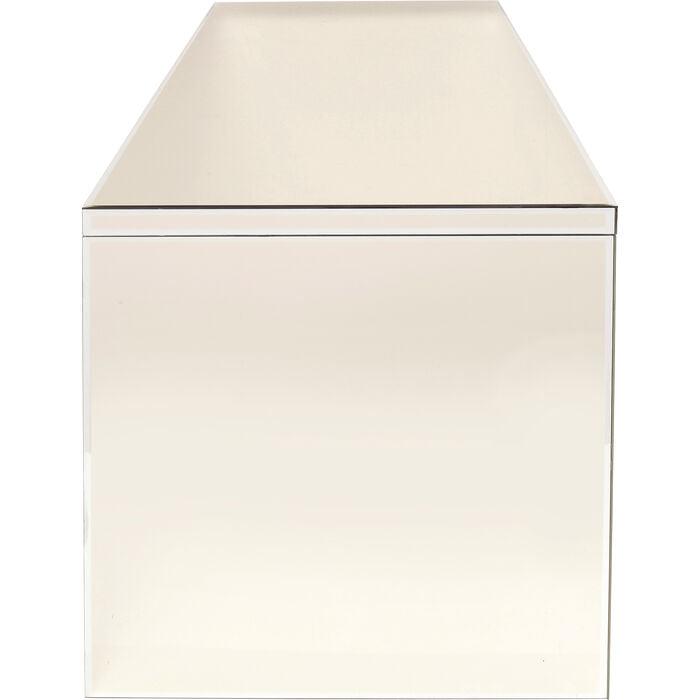 Luxusný zrkadlový stôl s elegantnými sklenenými úchytkami a úložným priestorom v troch zásuvkách je ideálnym riešením pre domáce kancelárie s efektom wow. Dostatočne veľa miesta na laptop, písacie potreby a krásny kyticu farebných kvetov.