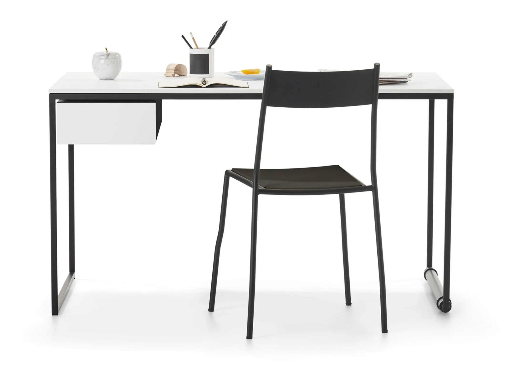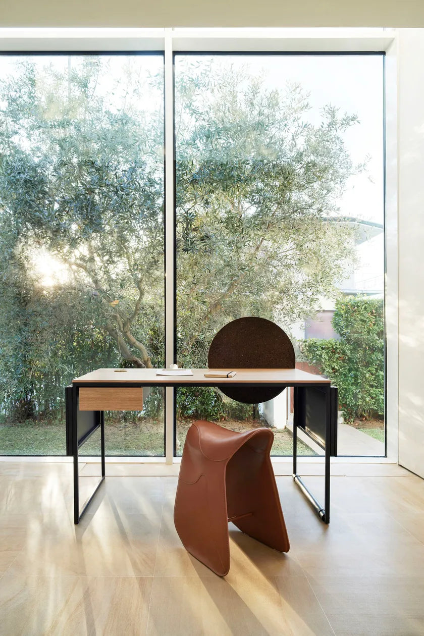 Písací stôl Macis od dizajnéra Lapo Ciattiho je funkčná a elegantná odpoveď na dynamické potreby súčasných interiérov. Vďaka štíhlej oceľovej konštrukcii a tenkej doske z dreva alebo materiálu PET, nábytok spája jednoduchosť formy s výrazným charakterom. Použitie hliníkového kolieska s ochranným povrchom umožňuje jednoduché presúvanie písacieho stola, čo z neho robí ideálnu voľbu do domácej kancelárie, ateliéru, coworkingového priestoru alebo moderného kabinetu.