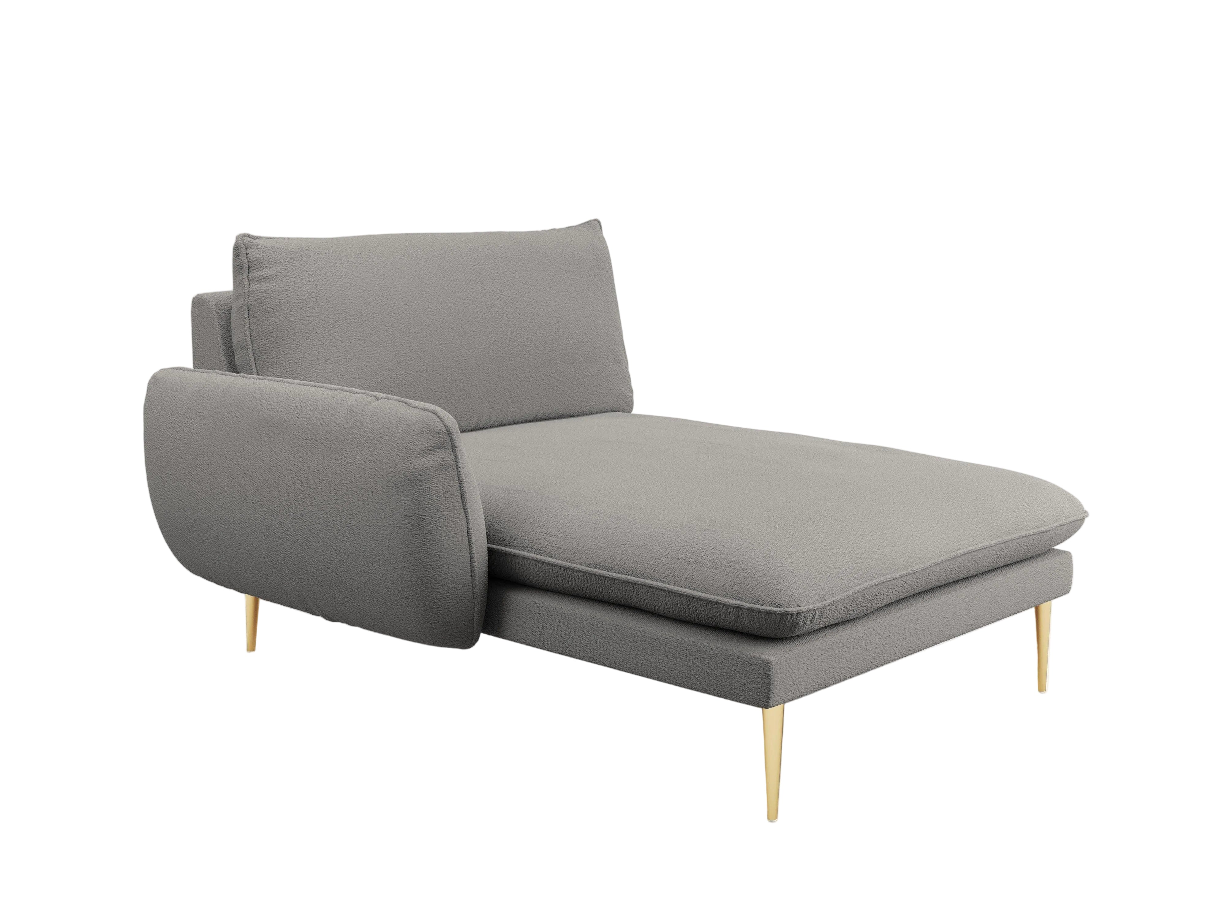 Szezlong ľavostranný VIENNA šedý boucle so zlatým podstavcom