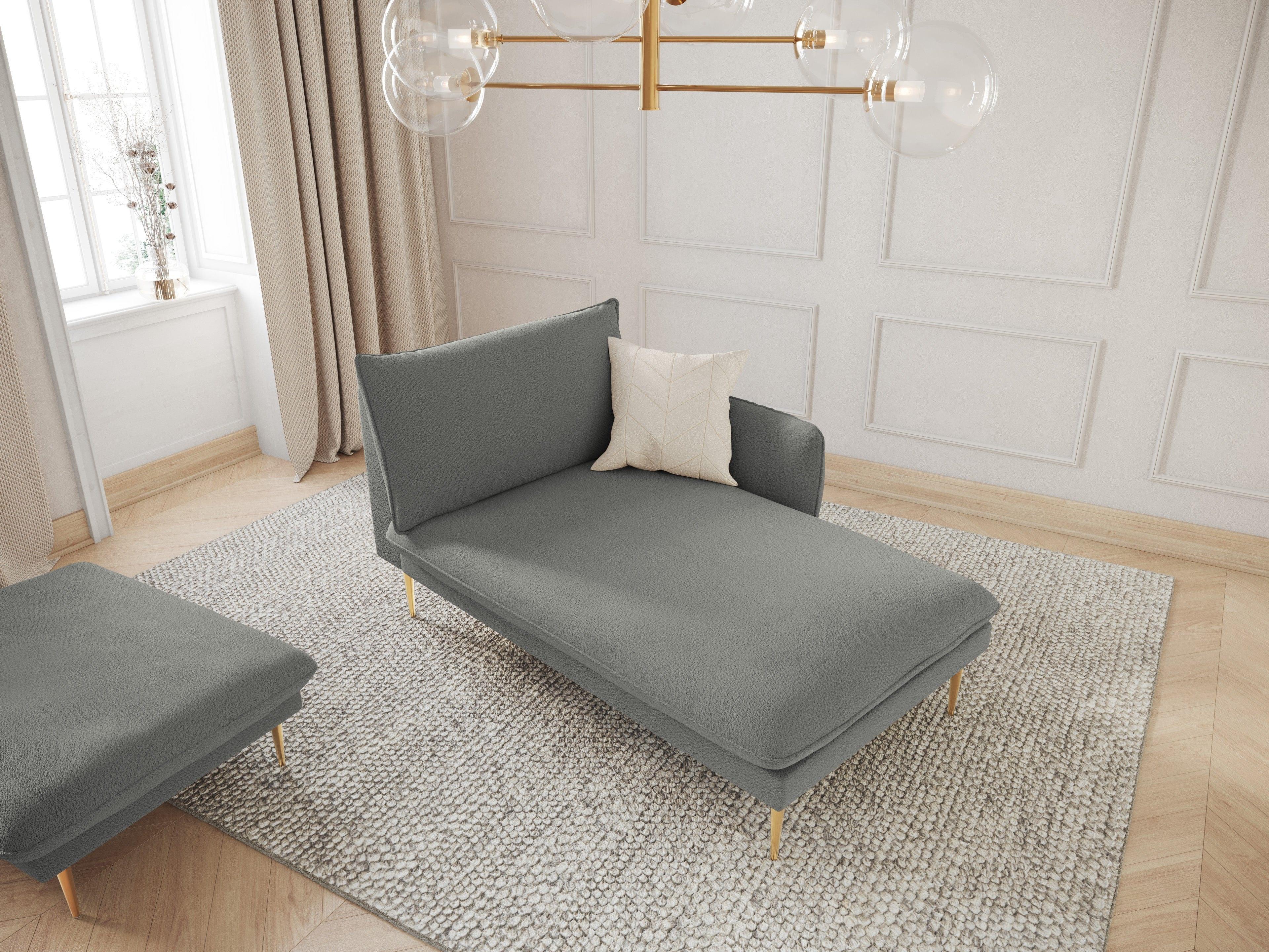 Pravostranný szezlong VIENNA šedý boucle so zlatým podstavcom
